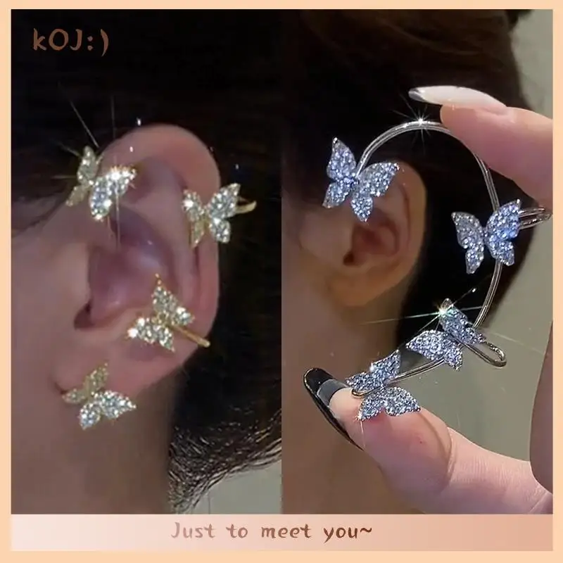 Посеребренные Позолоченные клипсы для ушей в виде бабочки, поддельные серьги для пирсинга для женщин, блестящие циркониевые клипсы для ушей, модные ювелирные изделия