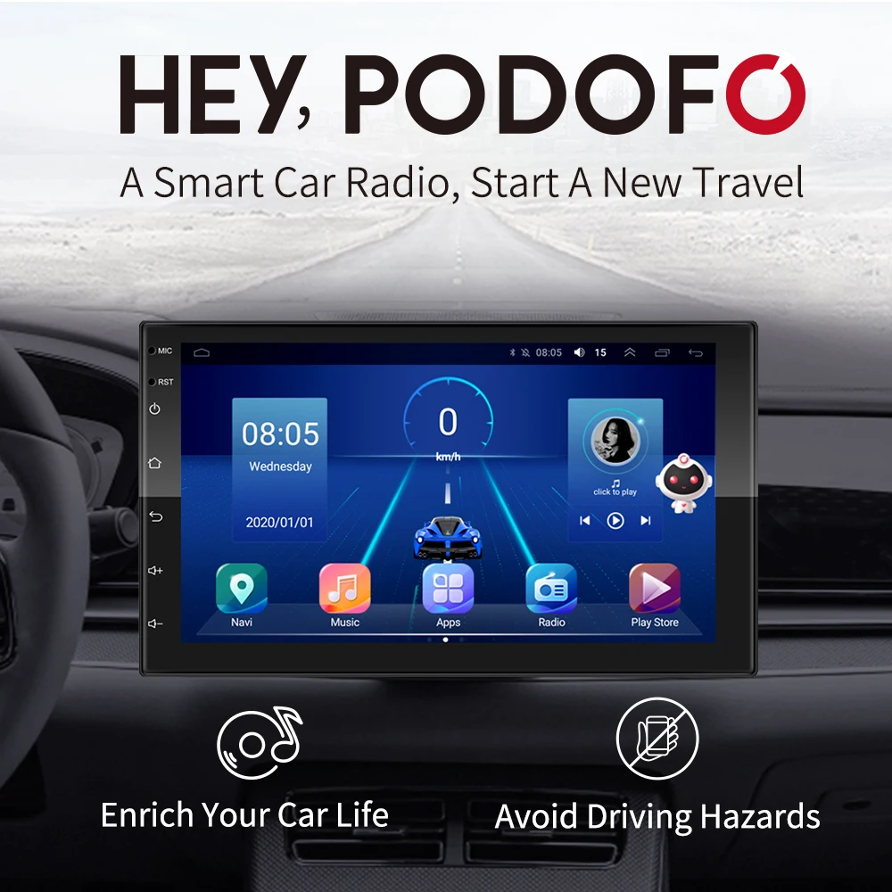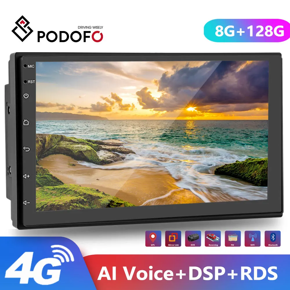 Автомагнитола Podofo, универсальная, 7 дюймов, Gps, Wi-Fi, Android, 64128 ГБ