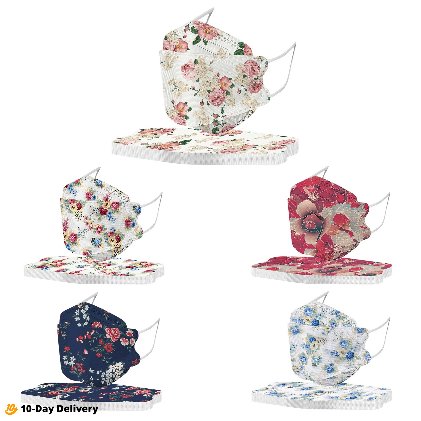 50 шт., маски для взрослых KN95, 4 слоя, с цветочным принтом