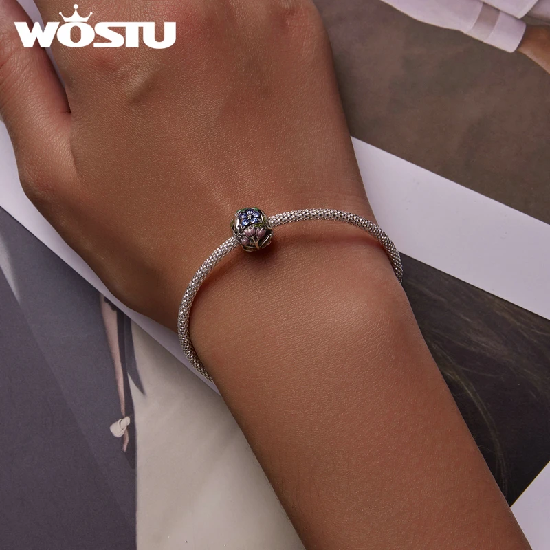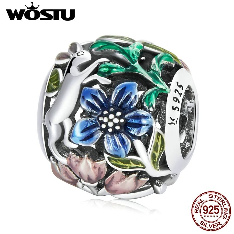 WOSTU Шарм из стерлингового серебра 925 пробы животные цветы джунгли секретный кулон из бисера для женщин DIY Браслеты Ювелирные украшения подарок FIC2208