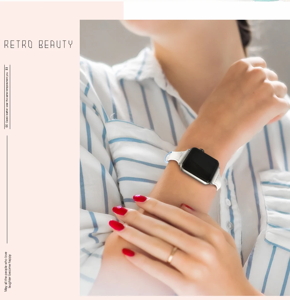 Ремешок из натуральной кожи для Apple Watch, браслет для iWatch series 6 Se 5 4 3 2 1, 42 мм 38 мм 44 мм 40 мм
