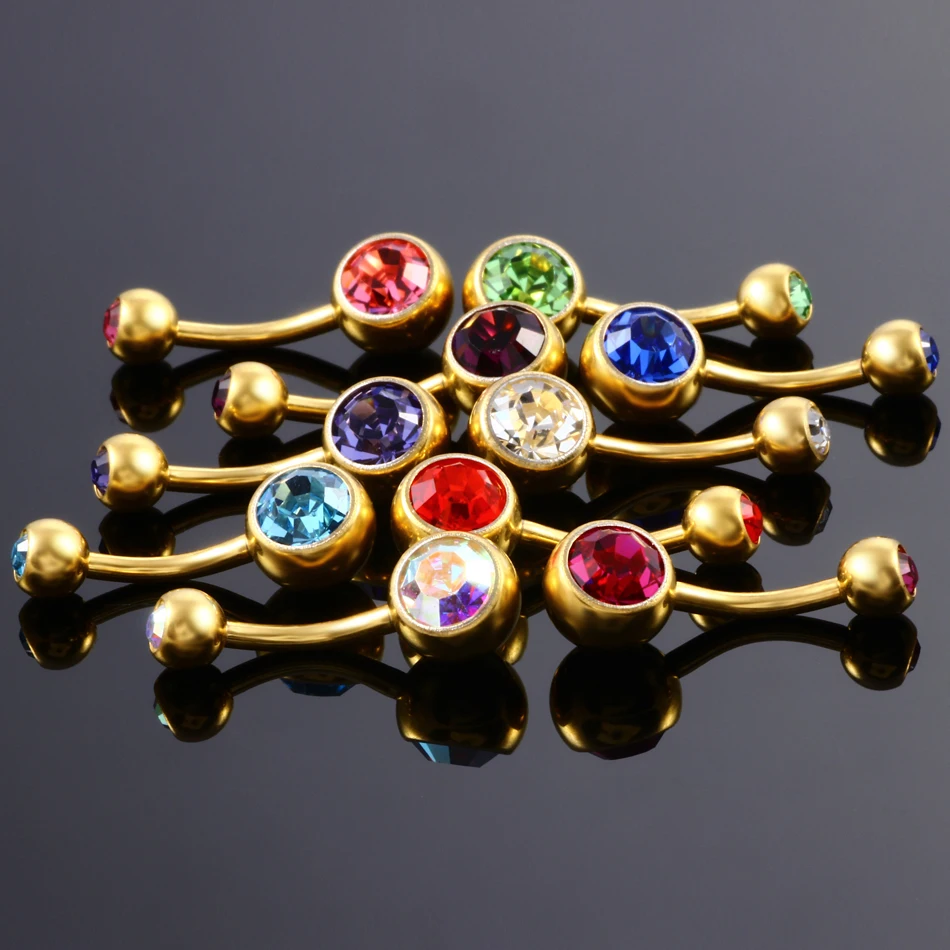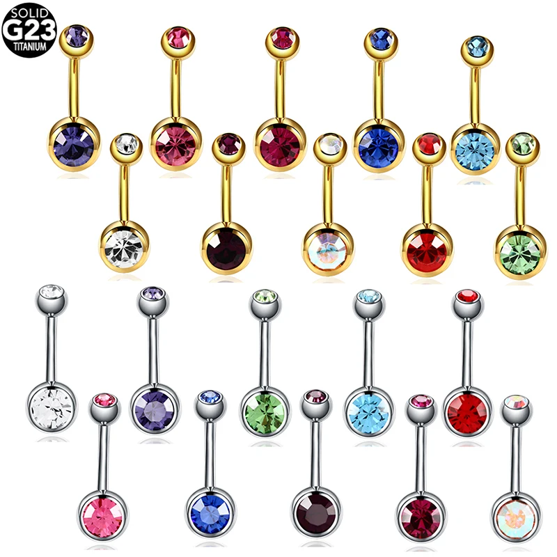 10 шт., 14 г, серебряное золото, пупка для живота, кольцо ASTM F136, титановый, пирсинг пупка, серьги, пирсинг, серьги, CZ, драгоценный камень, сексуальные женские ювелирные изделия