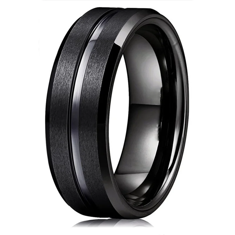 Модные черные вольфрамовые обручальные кольца 8 мм для мужчин, обру...