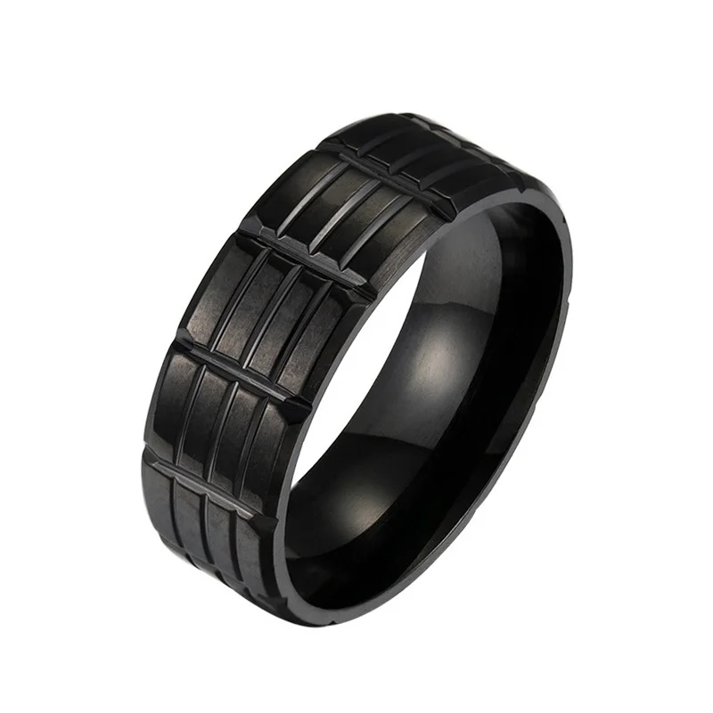 Мужское кольцо в полоску, черное кольцо из нержавеющей стали в стиле панк, ширина 8 мм, 2022