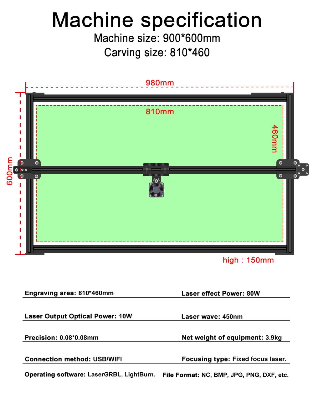 Конструкция из анодированного алюминиевого сплава делает машину более прочной и улучшает точность гравировки. Вся конструкция предназначена для быстрой сборки, которая, как правило, может быть завершена в течение 10-20 минут.