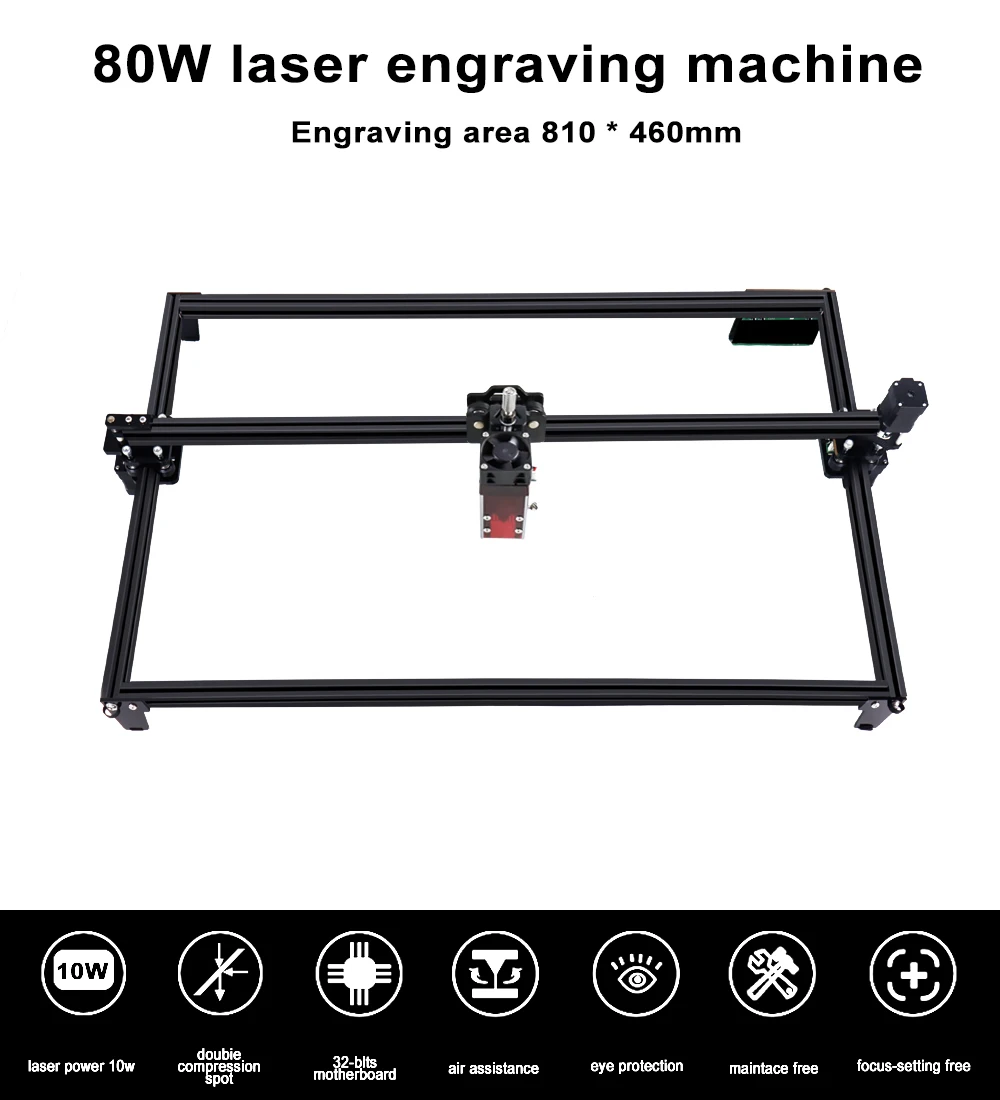 Лазерный гравер ZBAITU большой площади 81*46 см, машина для резки дерева, сделай сам логотип примечание с 80 Вт лазерной головкой с воздушным ударом