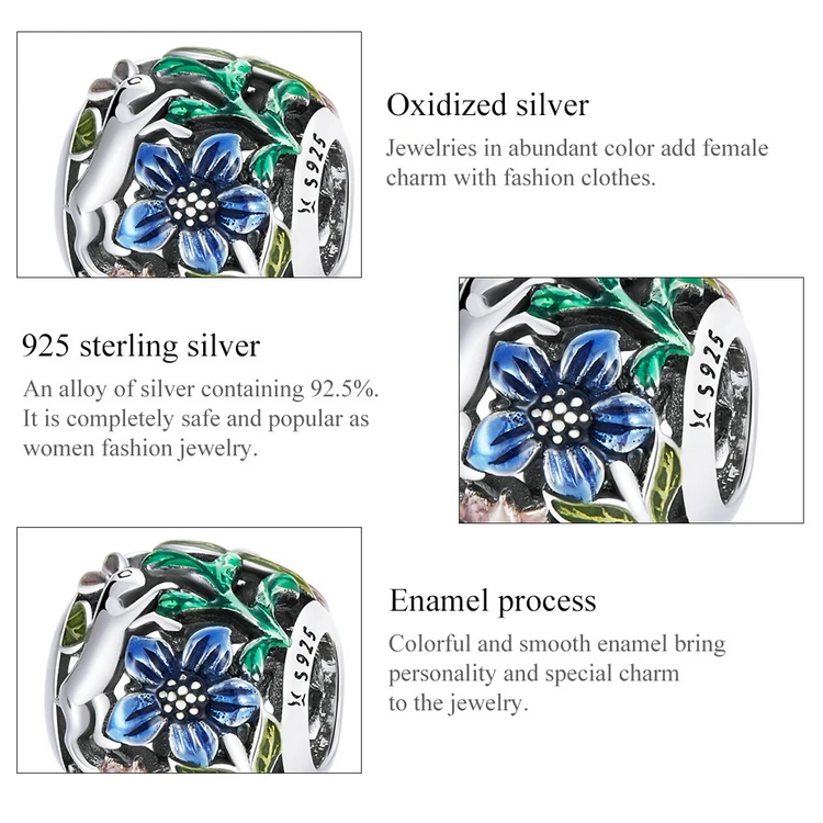 WOSTU Шарм из стерлингового серебра 925 пробы животные цветы джунгл...