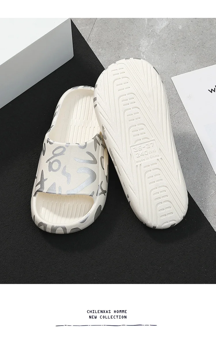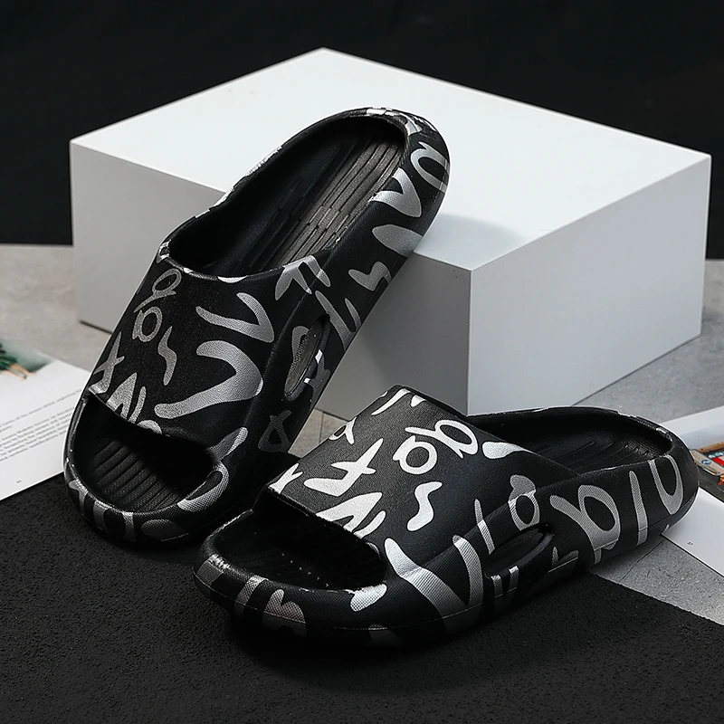 Шлепанцы для мужчин и женщин, сандалии с принтом, Нескользящие, толстые пляжные тапочки, тапочки для улицы, Нескользящие, для пар, роскошные