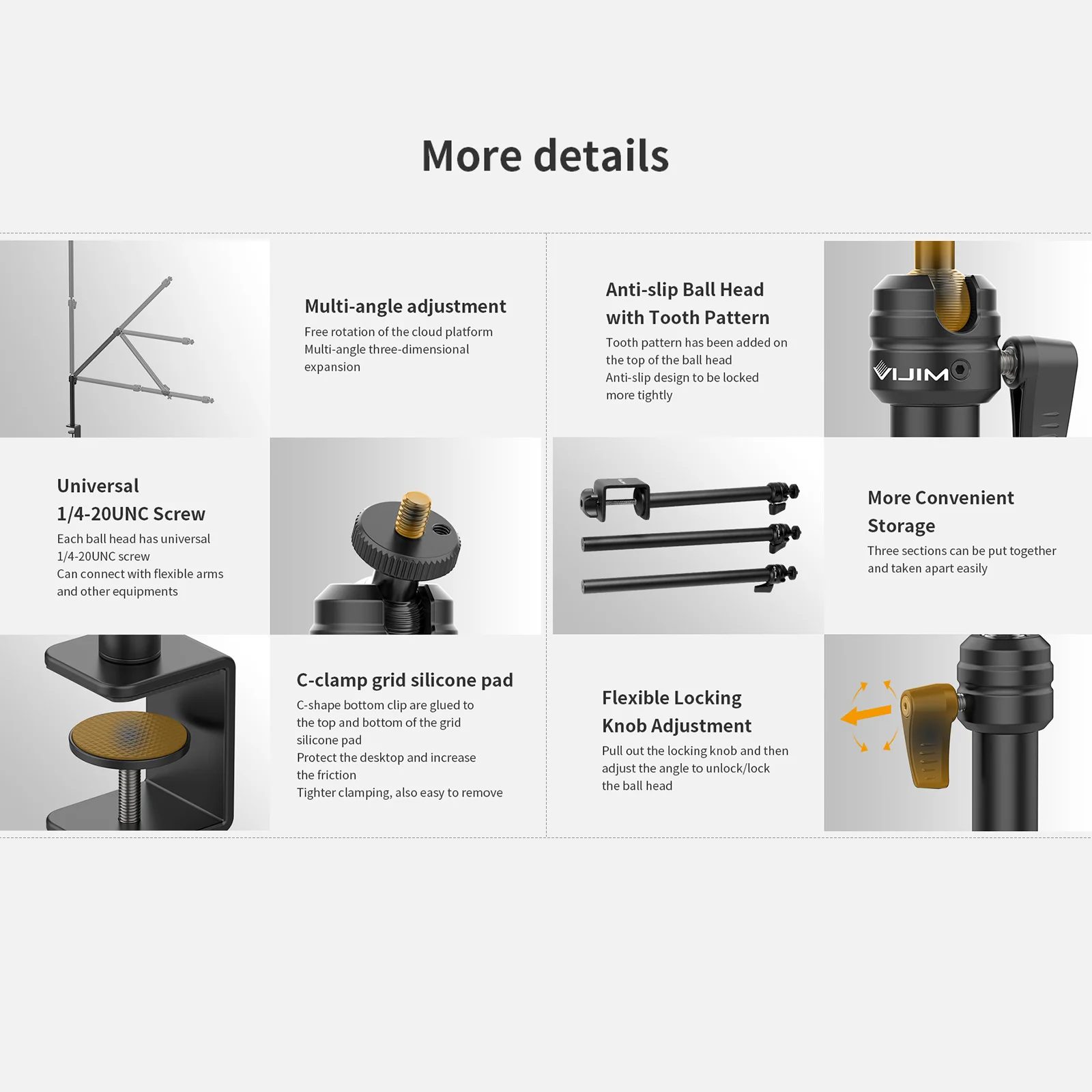 VIJIM LS08LS06LS04 C-Clamp настольная подставка для прямой трансляции, 3-секционная Гибкая рукоятка, вращающаяся шариковая головка с винтом 14 для прямой трансляции