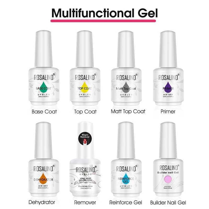 Базовое и матовое покрытие ROSALIND, профессиональный магический быстросъемный лак для ногтей, праймер и Дегидратор для поверхности ногтей