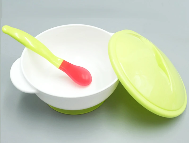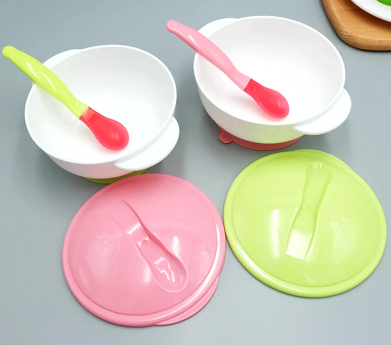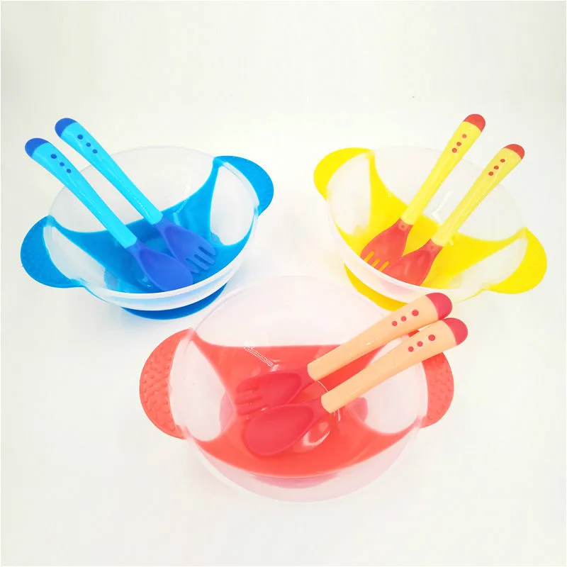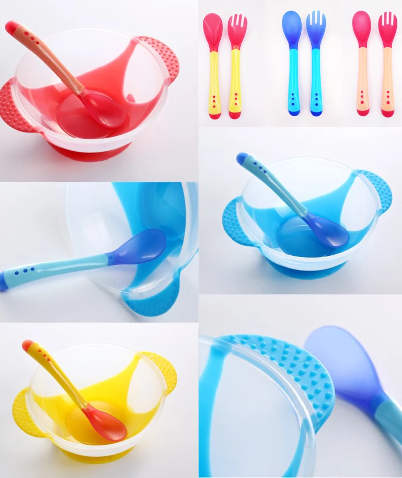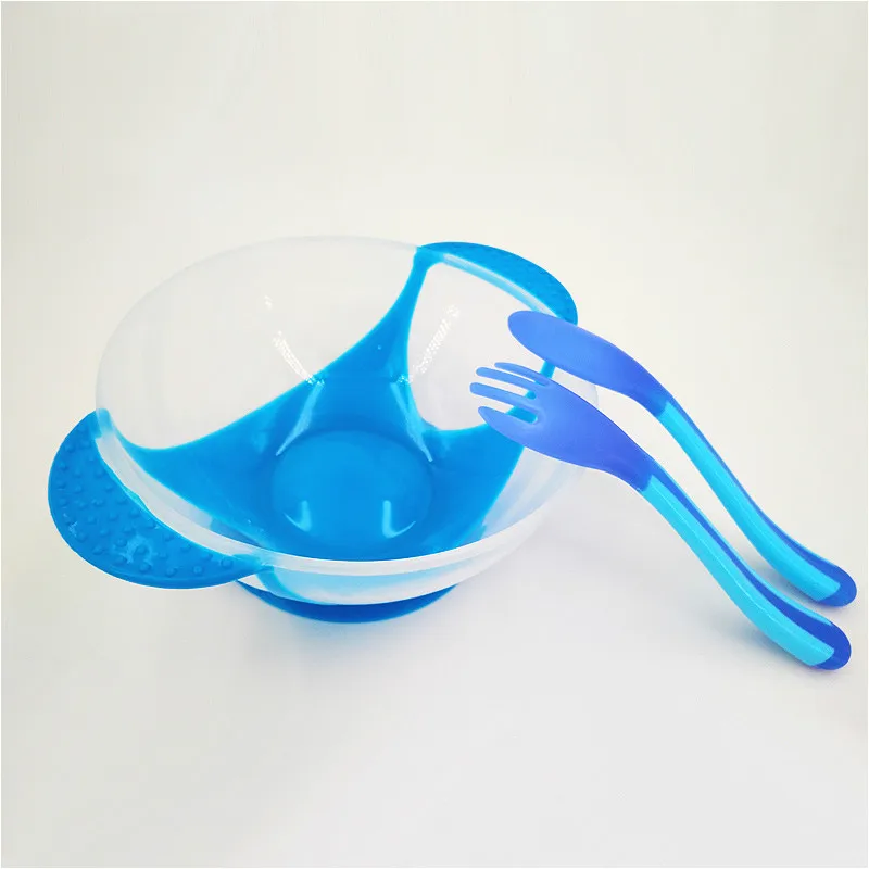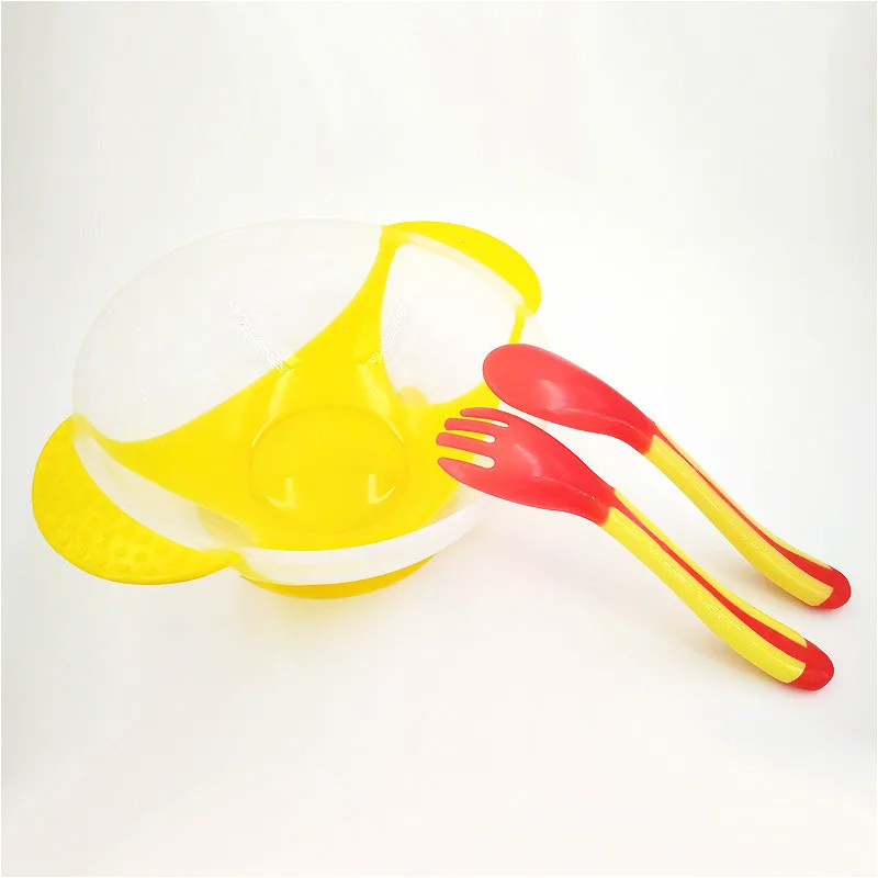 Ложка для кормления с датчиком температуры, детская посуда, миска для еды, Обучающие блюда, тарелкалоток, присоска, набор детской посуды