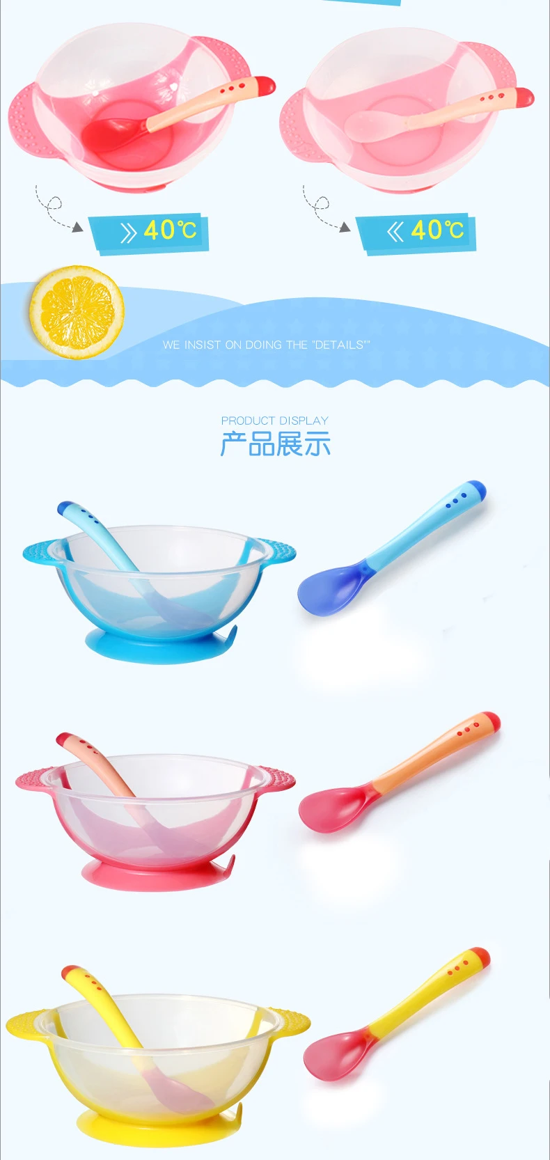 Детская миска с датчиком температуры, ложка для кормления, детская ...