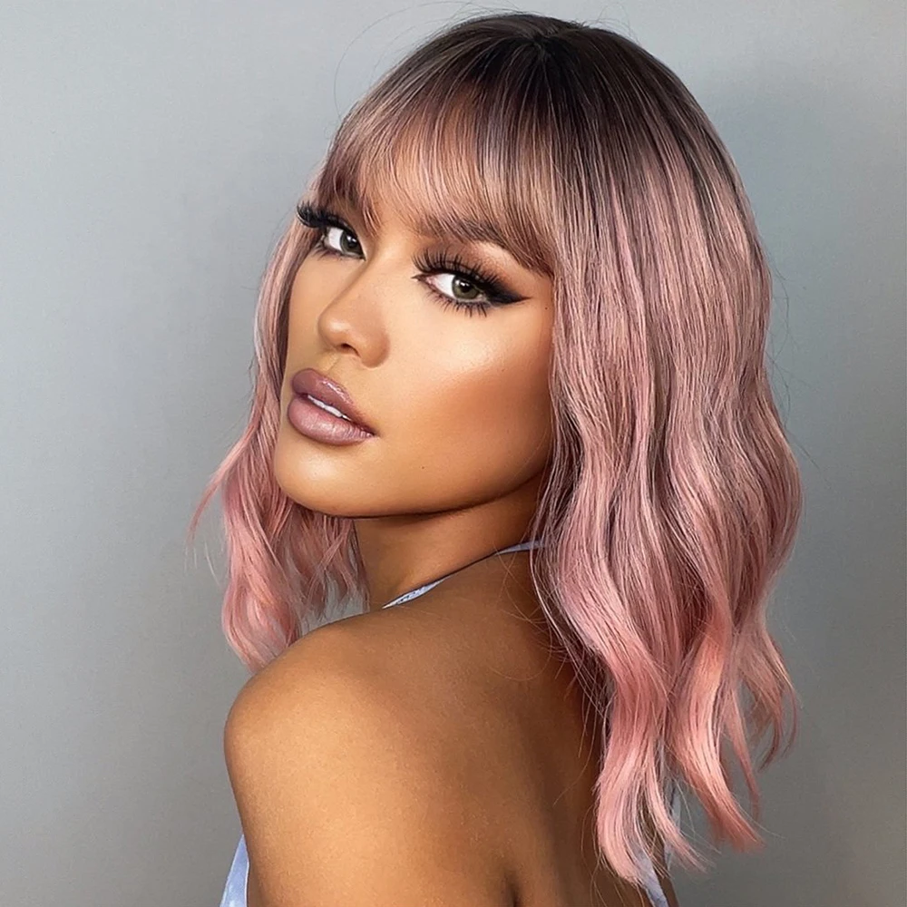 Парик GEMMA Омбре Черный Розовый Средний волнистый синтетический с челкой для чернокожих женщин натуральные парики боб Лолита косплей термостойкие волосы