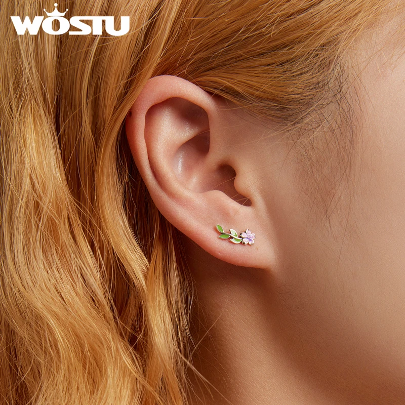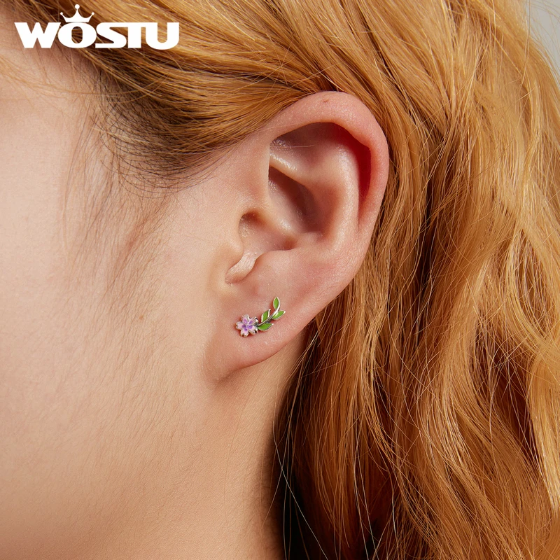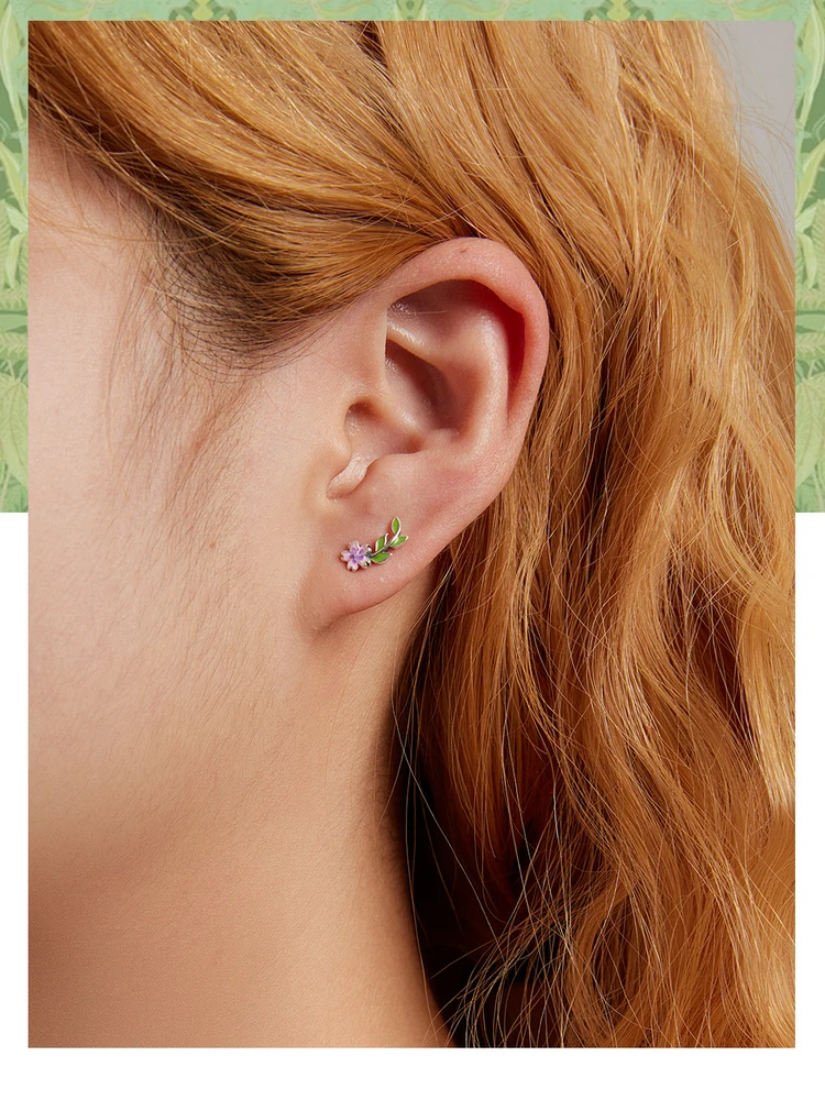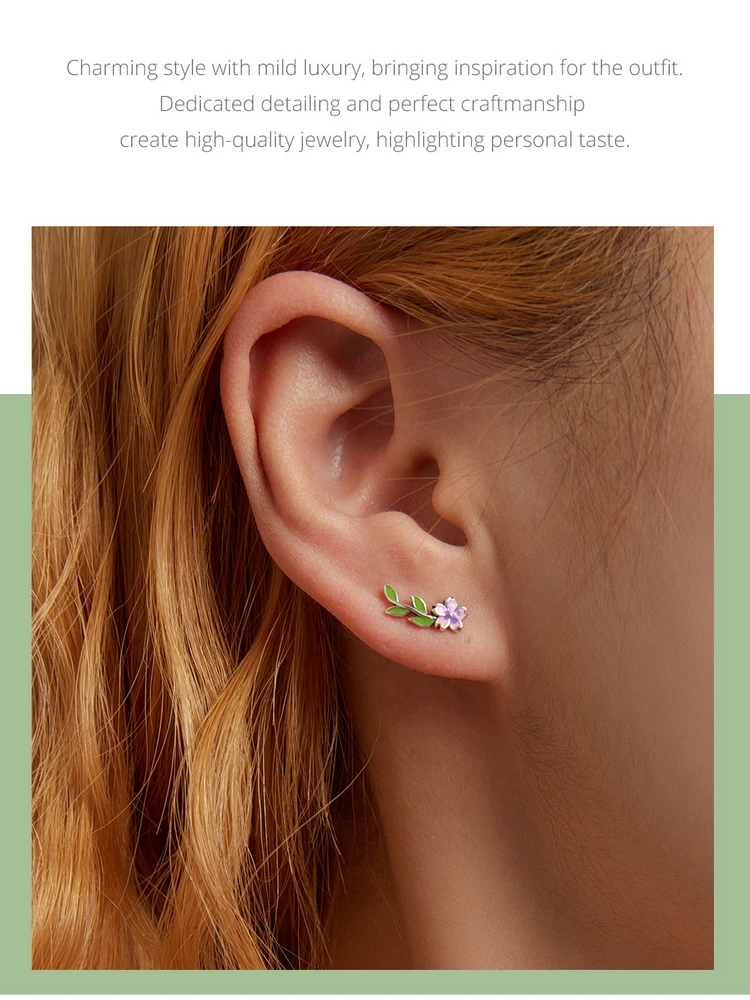 Женские серьги-гвоздики в вечерние растений, из серебра 925 пробы