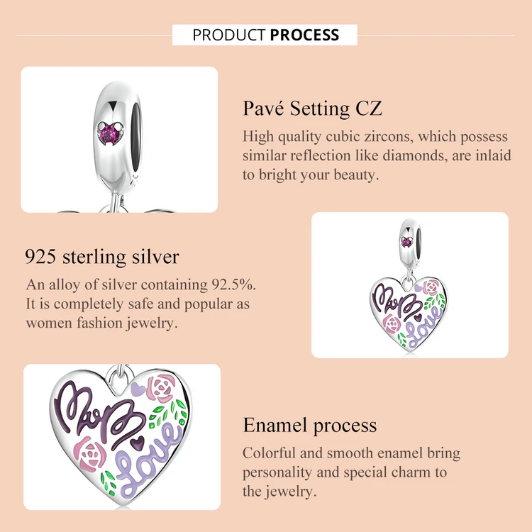 BAMOER, серебро 925 пробы, кулон с сердечком на день матери, подход...