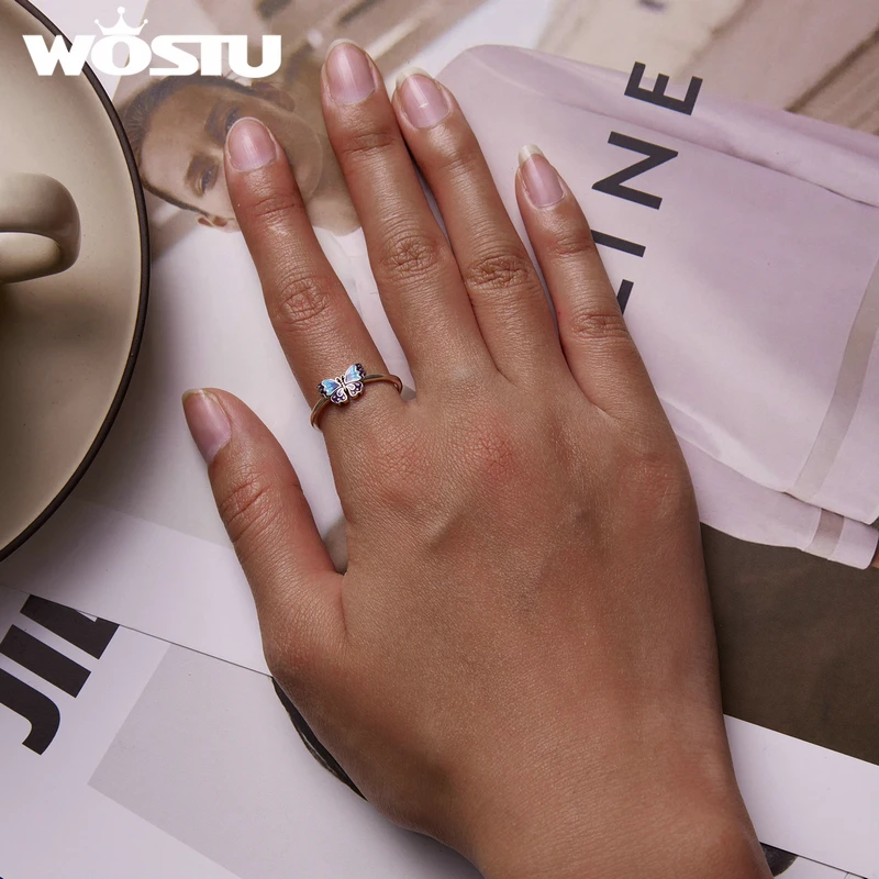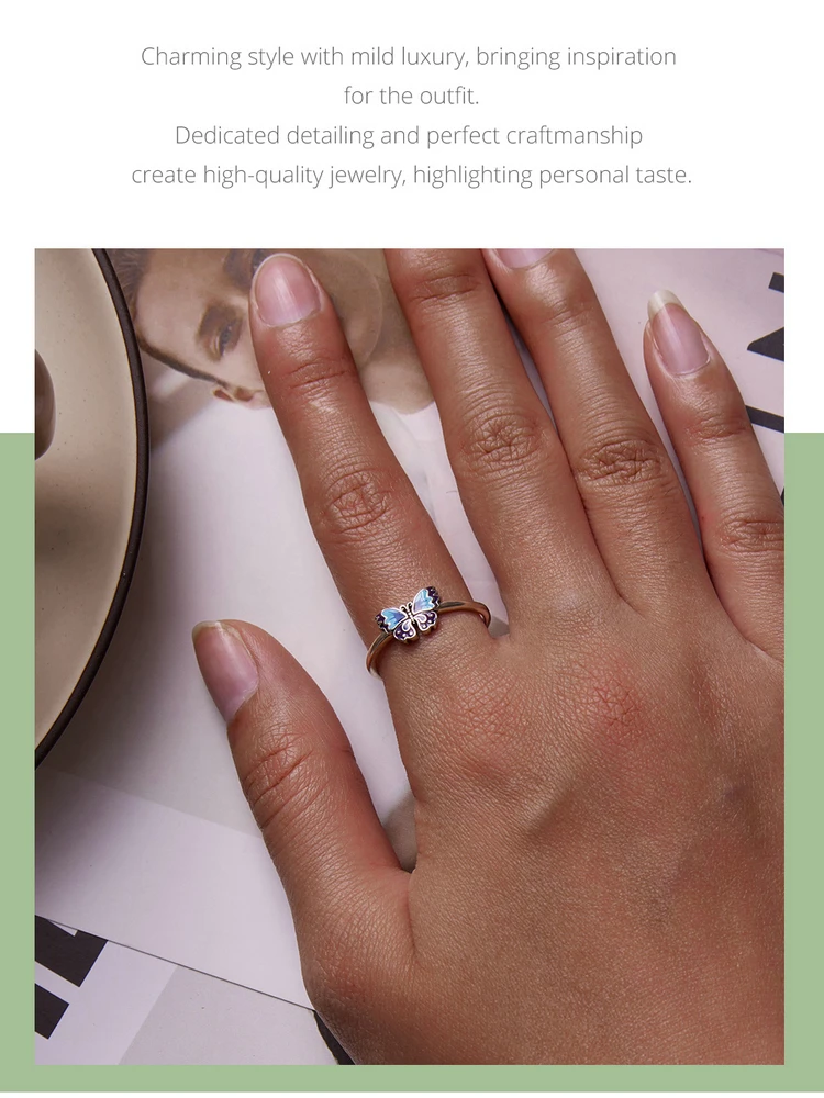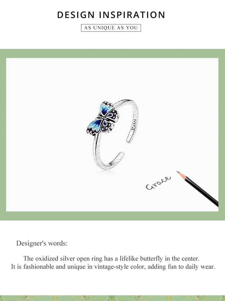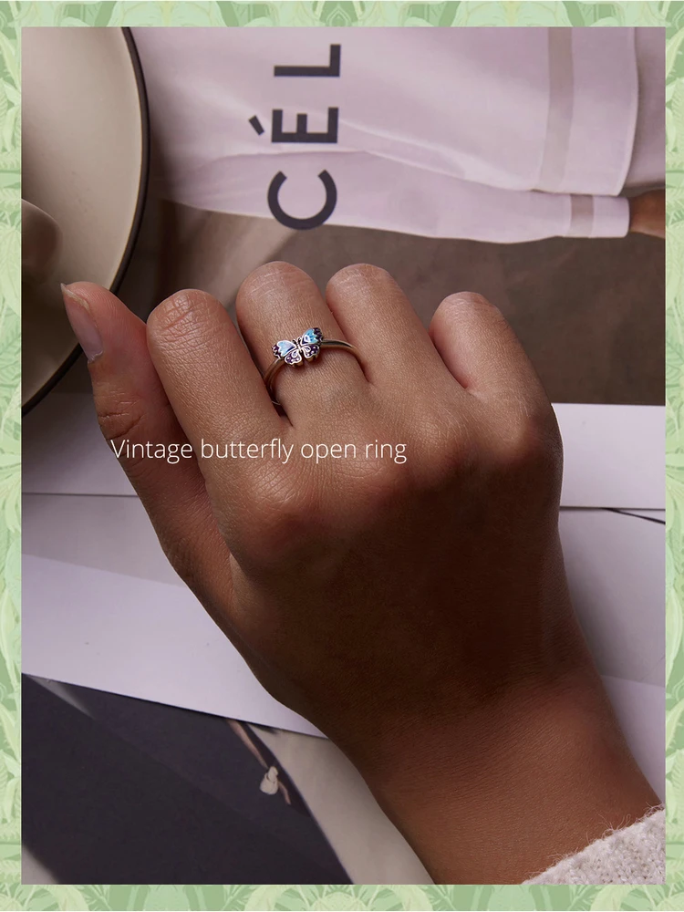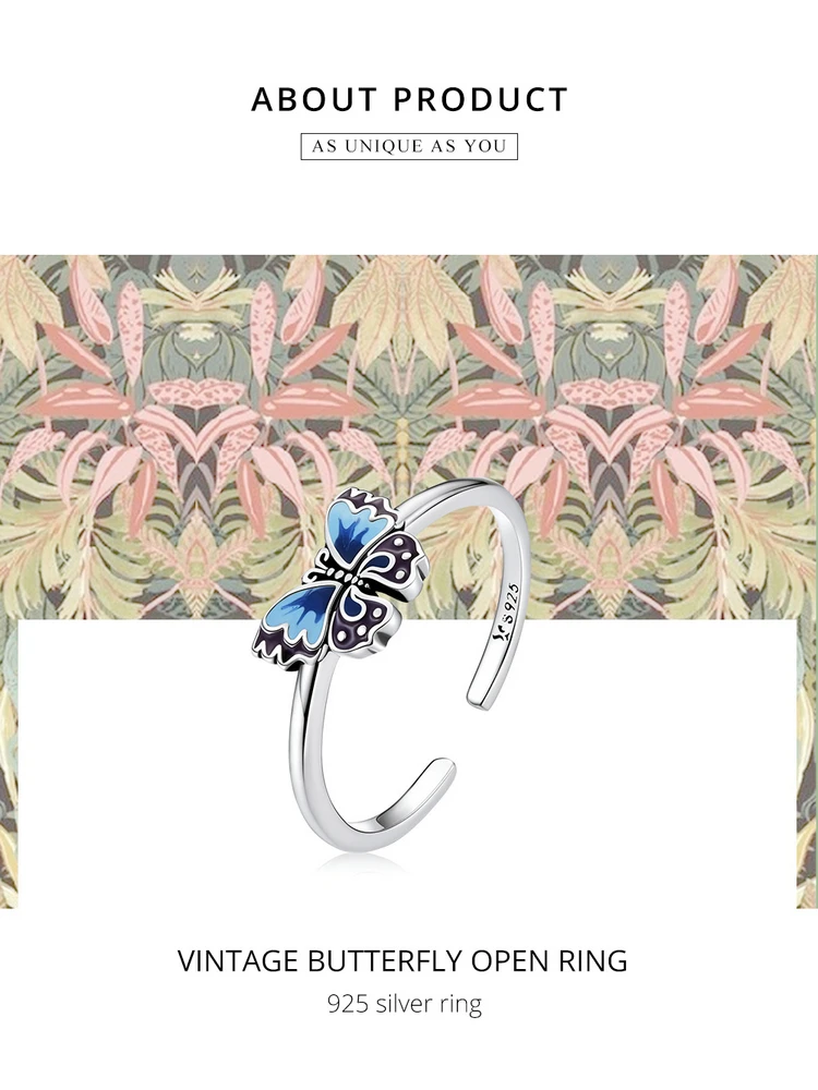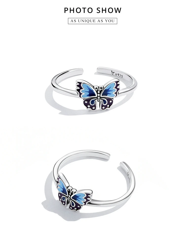 Женское Открытое кольцо в виде бабочки, из серебра 925 пробы