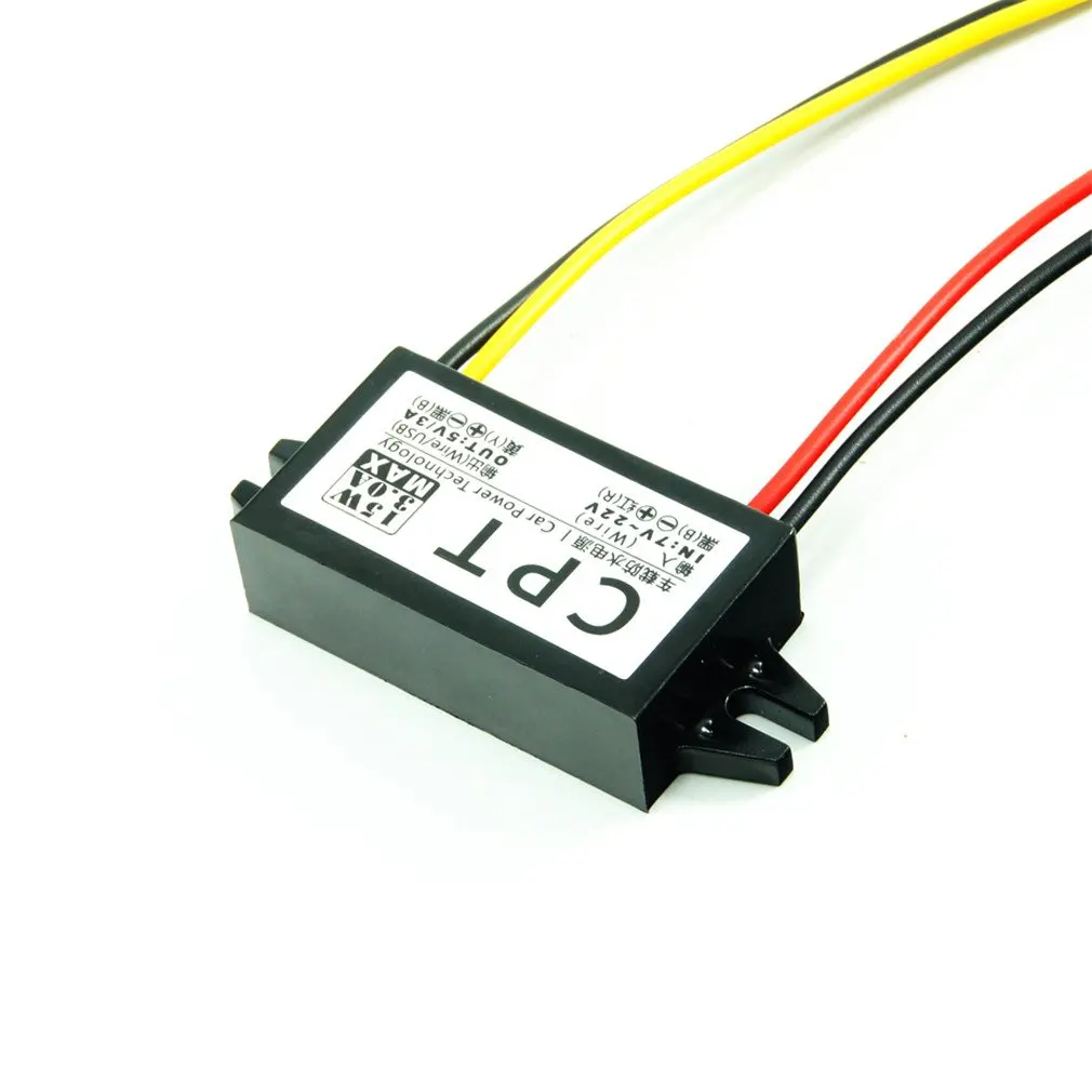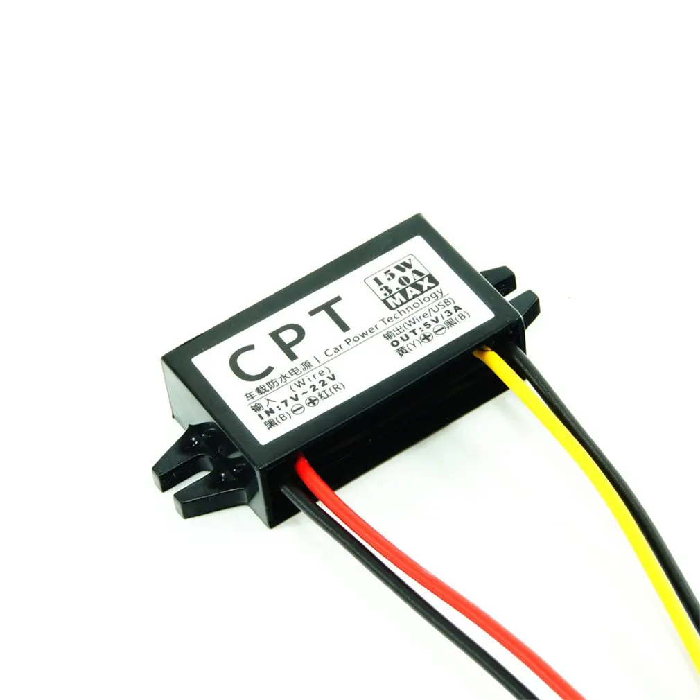 Особенности:100% новый и высокое качествоВсе эпоксидные герметичные контейнеры с водонепроницаемым корпусомЛегкий компактный, удобный в использовании и транспортировкеНеизолированный, синхронное выпрямлениеВысокая эффективность:>96%Надежное, низкое тепловыделениеС защитой от перегрузки/перегрузки по току/низкого напряжения/перегрева, стабильной работой.Автоматическое восстановление Свойства продукта:Входное напряжение: DC12VВыходное напряжение: DC5VВыходной ток: 3AВыходная мощность: 15 ВтМодель: CPT-UL-6 Характеристики:Входное напряжение: DC12VВыходное напряжение: DC5VВыходной ток: 3AВыходная мощность: 15 ВтЭффективность: >96%Рабочая температура:-40 °-80 °Размер (ДхШхВ): около 45*26*12 (мм)Длина кабеля: прибл. 330 ммЦвет: черный Посылка включает в себя:1 * Модуль конвертера автомобильного зарядного устройства