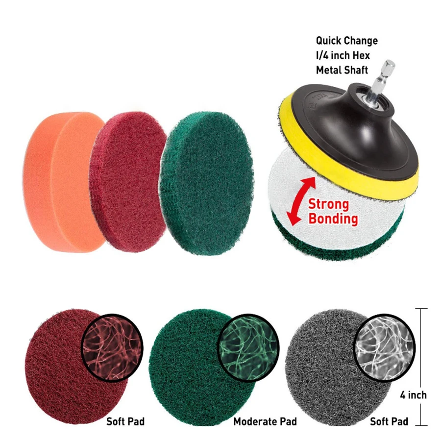 Щетка для дрели 37115 шт., многофункциональная щетка для мойки, губка и абразивный материал, с длинным наконечником