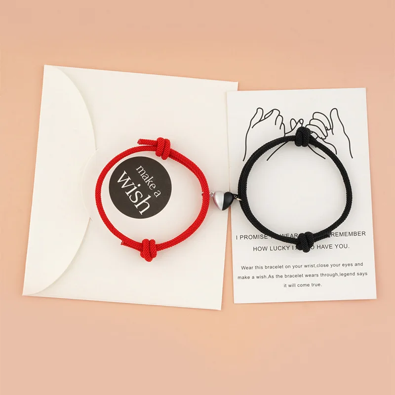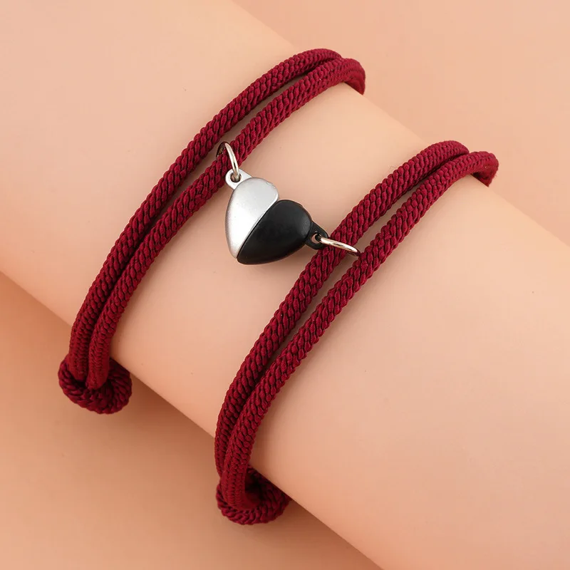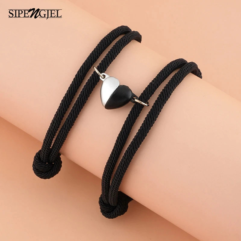 SIPENGJEL модный регулируемый браслет ручной работы с веревкой для пары магнитный браслет с сердцем для женщин и мужчин ювелирные изделия дружбы