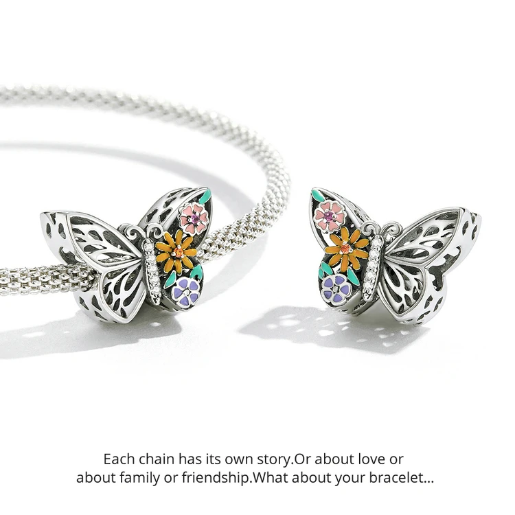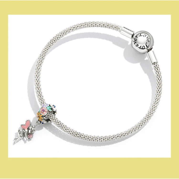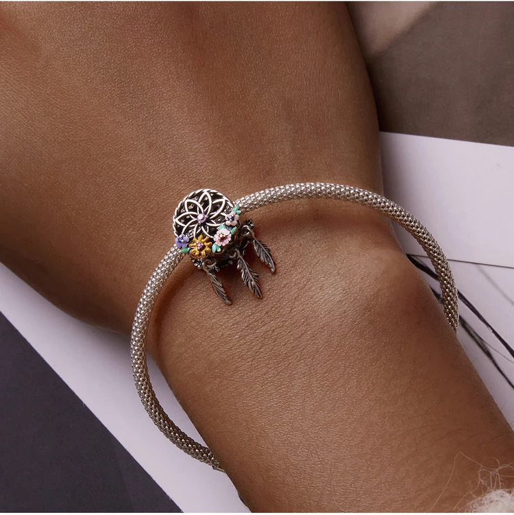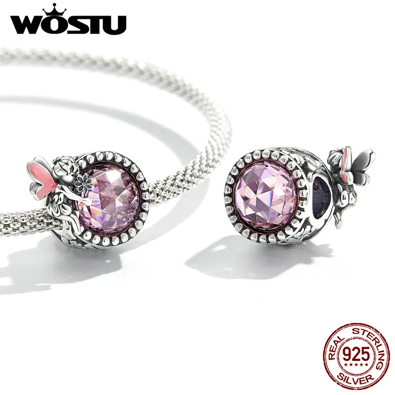 WOSTU 925 Стерлинговое Серебро Шарм цветок бабочка кулон гирлянда Ловец снов цветок Фея для женщин браслеты ювелирные украшения