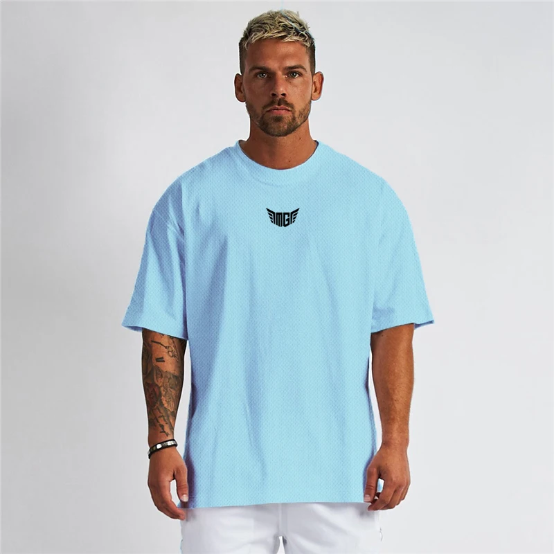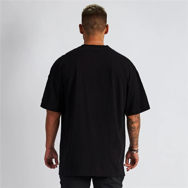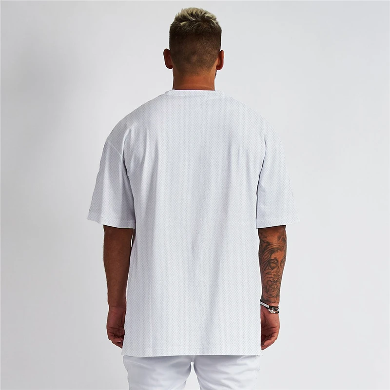 Футболка мужская оверсайз с коротким рукавом и спущенными плечами, свободная сетчатая майка для фитнеса и баскетбола, одежда для спортзала, на лето