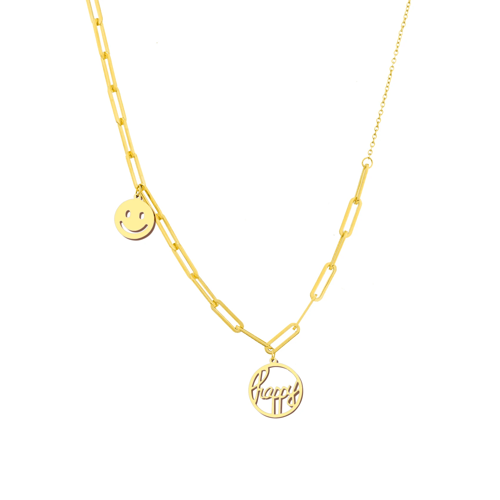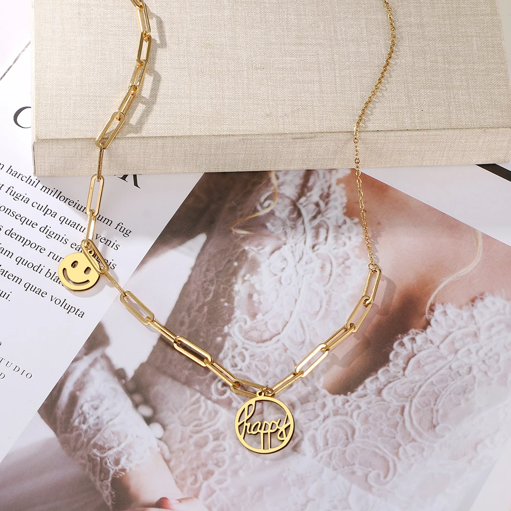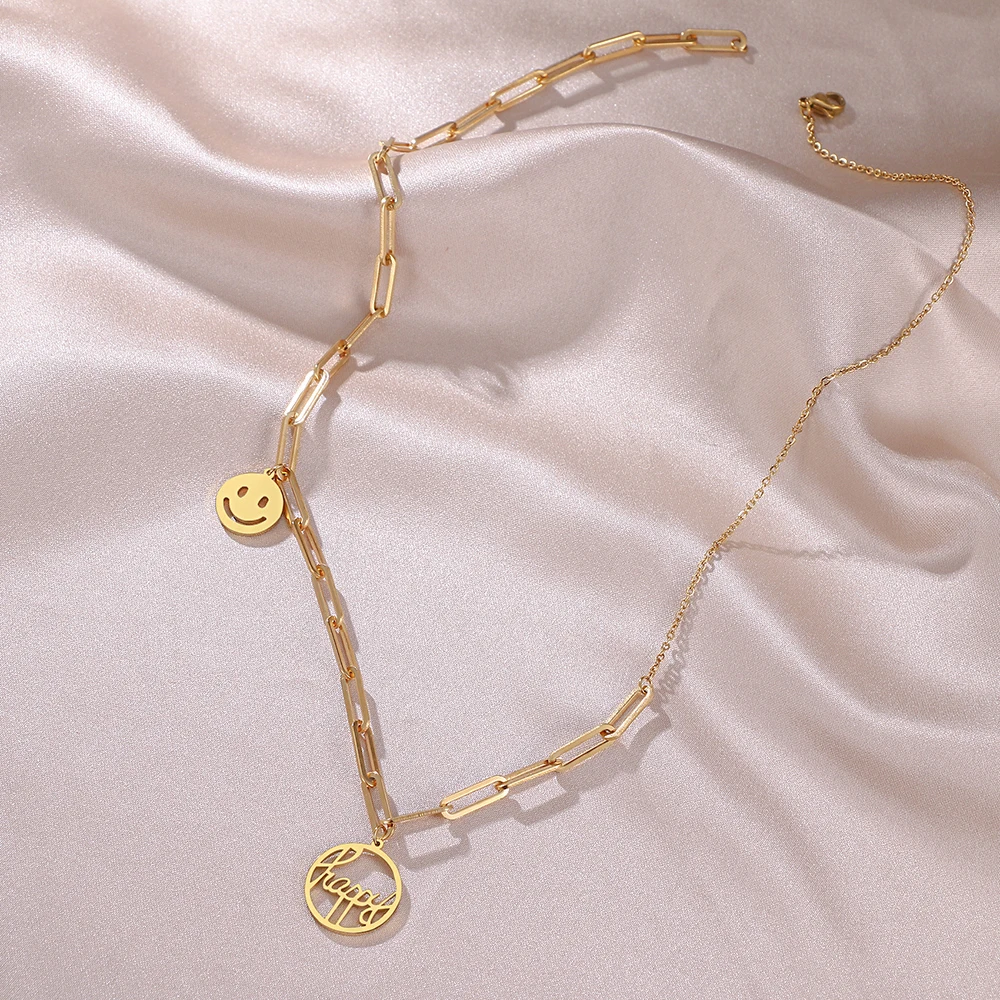 Ожерелья из нержавеющей стали, стильная цепочка с зажимом для бумаги, подвеска с надписью Happy Smile, модное ожерелье-чокер для женщин, ювелирные изделия, подарок Вечерние