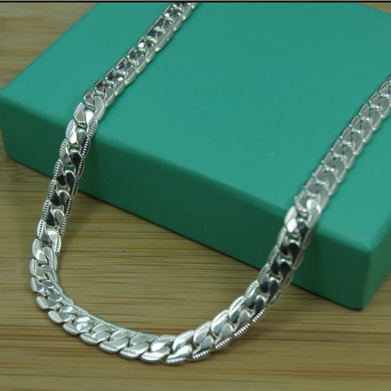 45-60 см 925 Серебряное ожерелье цепочка 6 мм ширина люксовый бренд...