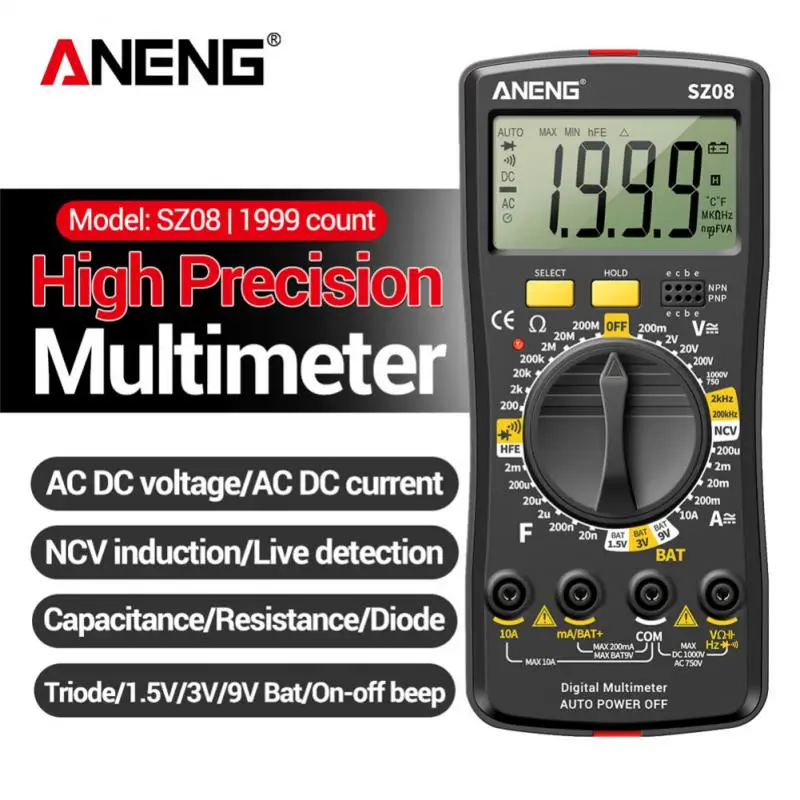 ANENG SZ08 ультратонкий цифровой мультиметр для хранения Интеллектуальный автоматический Вольтметр AC DC 220 В тестер сопротивления ручной работы для передачи данных профессиональный мультиметр NCV