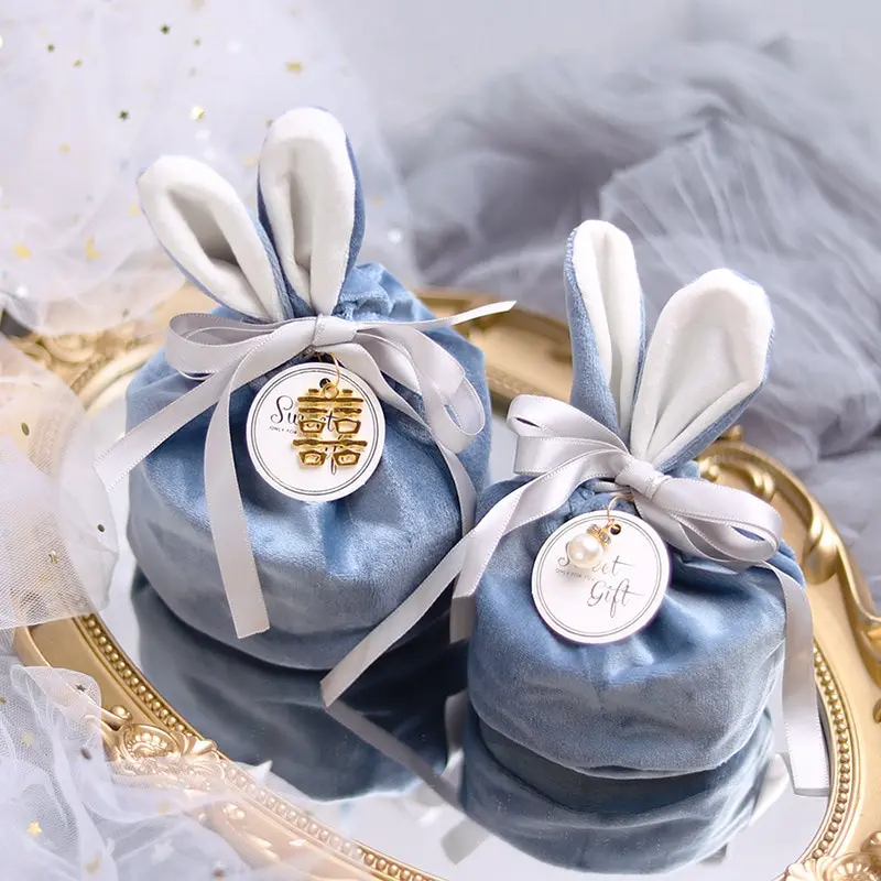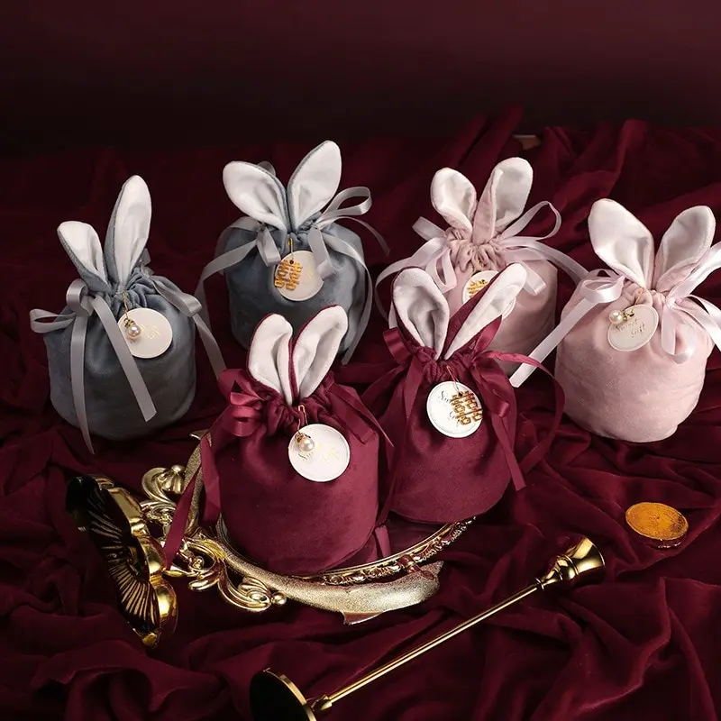 Бархатный Подарочный пакет с пасхальными кроличьими ушками, упаковочный мешок для конфет, шоколада, органайзер для ювелирных изделий, чехлы для милого момента, свадебных сувениров