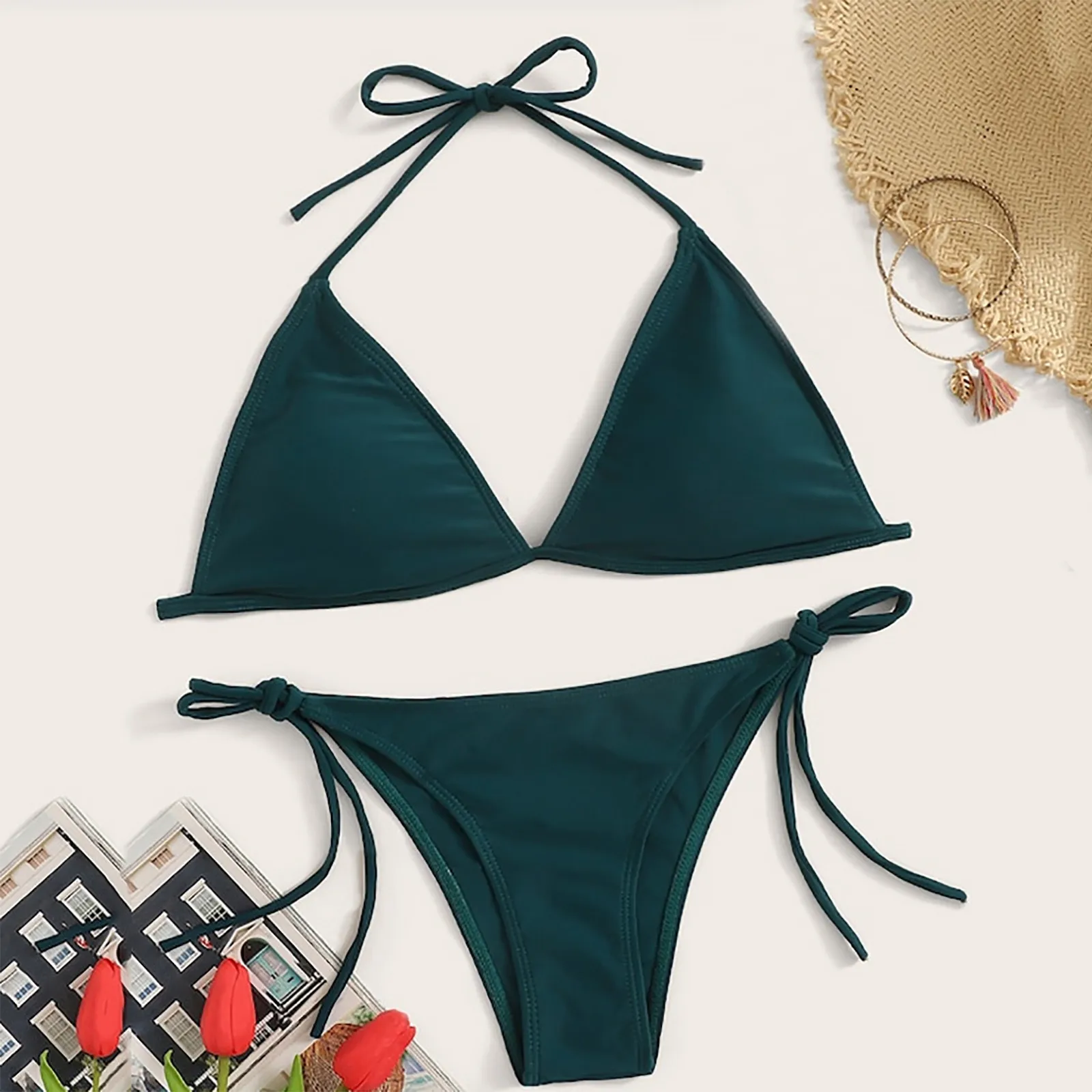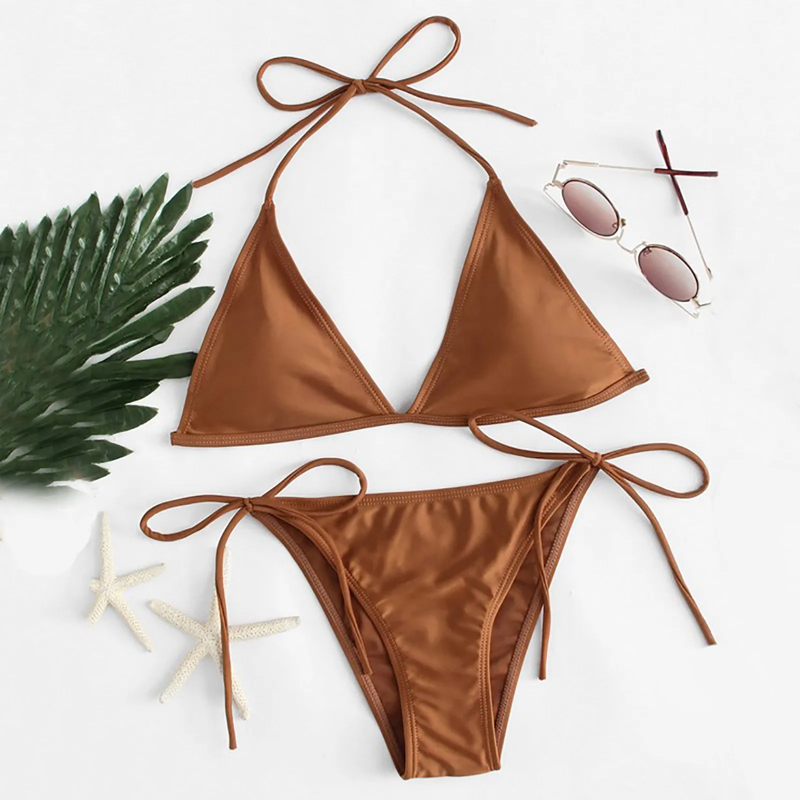 Женский сексуальный комплект бикини с лямкой на шее, Женский монокини с контрастным разрезом и пуш-ап, комплект бикини из двух предметов, купальник