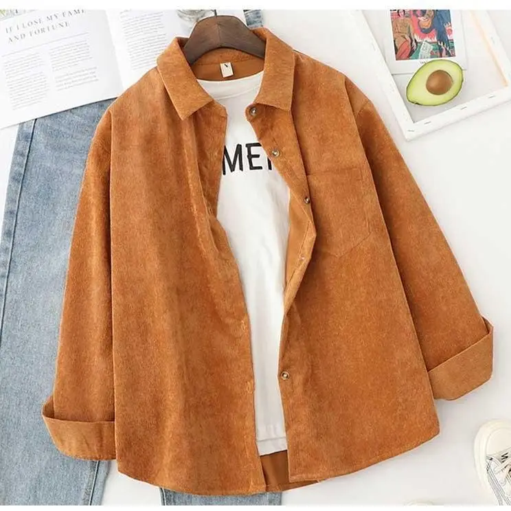 Женские рубашки, новинка весны 2021, Вельветовая рубашка в стиле ре...