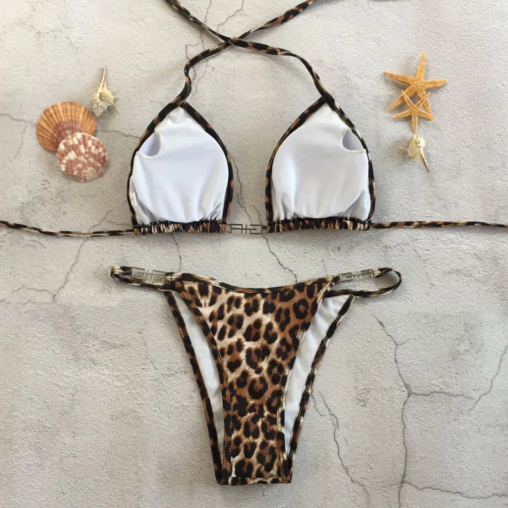 Комплект бикини с лямкой на шее, женский Купальник с леопардовым пр...