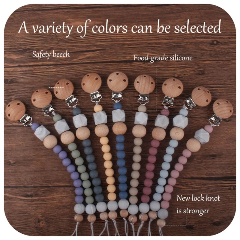 Буковая цепочка для соски-пустышки для новорожденных, без бисфенола