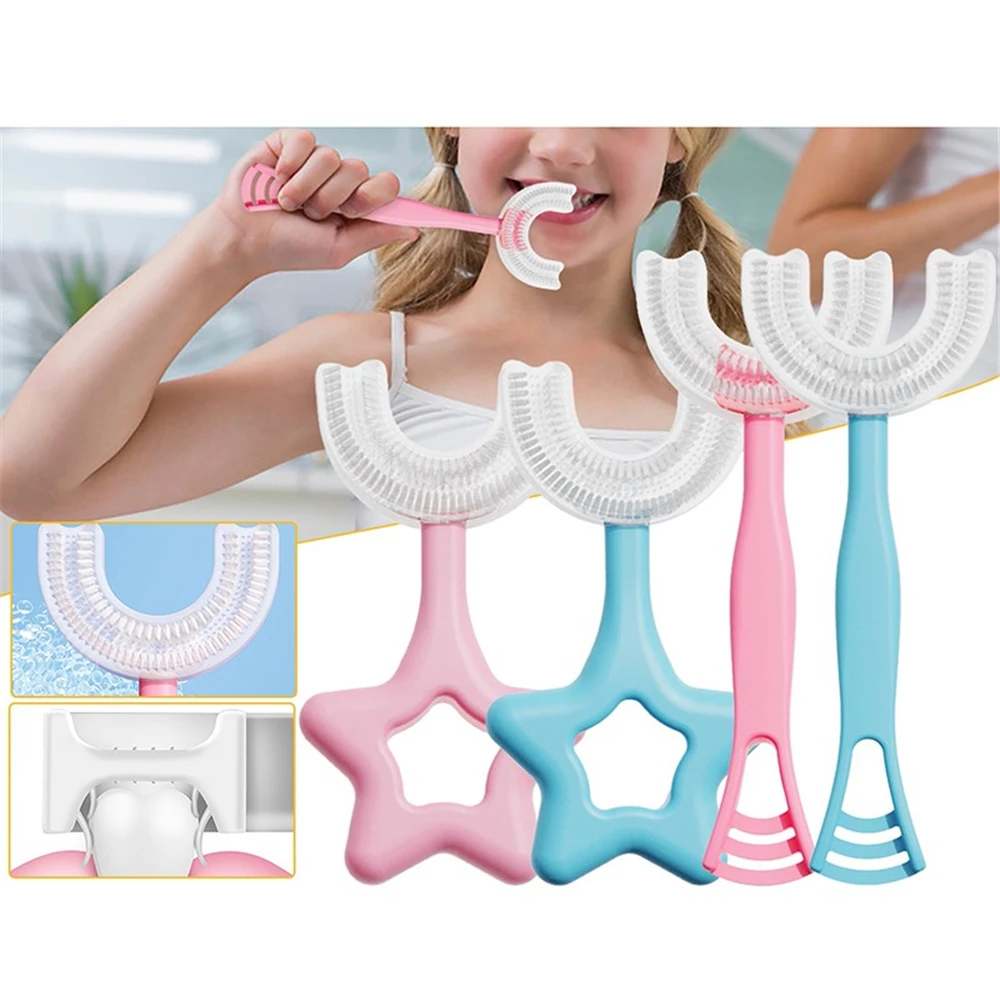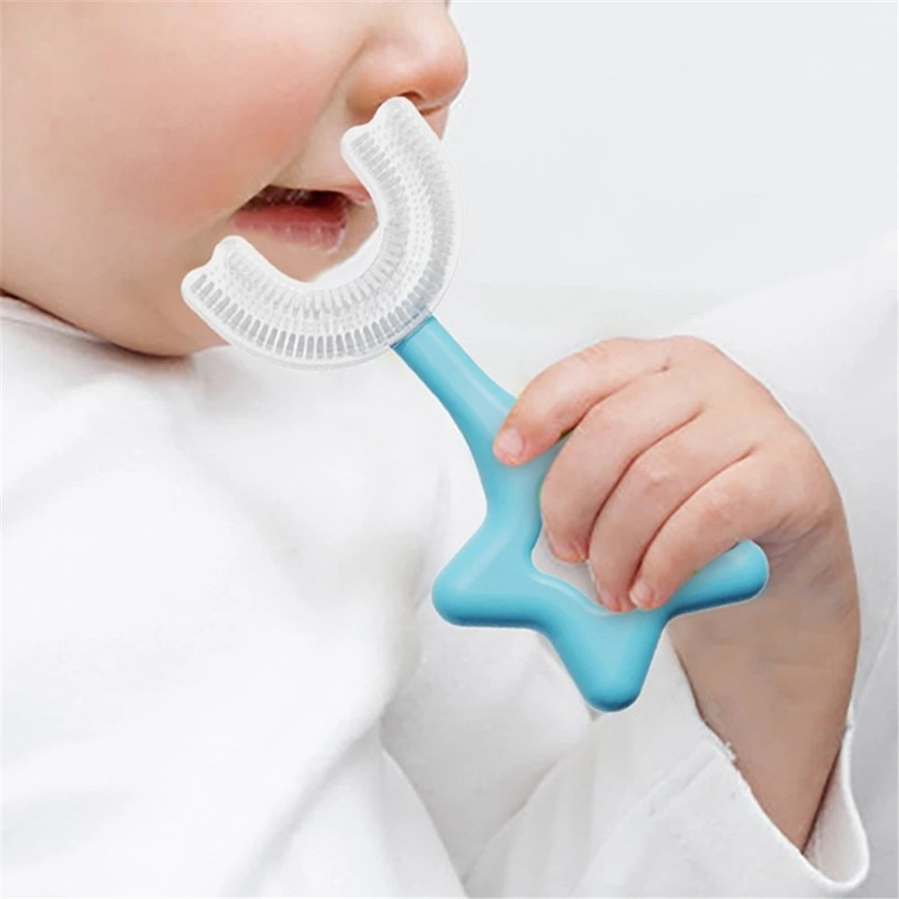 Детская зубная щетка U-образной формы с поворотом на 360 градусов, зубная щетка для младенцев, детская силиконовая щетка для младенцев, уход за полостью рта, чистка