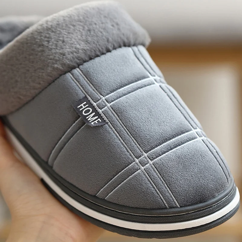 Мужские Зимние Замшевые шлепанцы в клетку, плюшевые бархатные домашние тапочки для мужчин, Нескользящие водонепроницаемые мужские тапочки, 2021