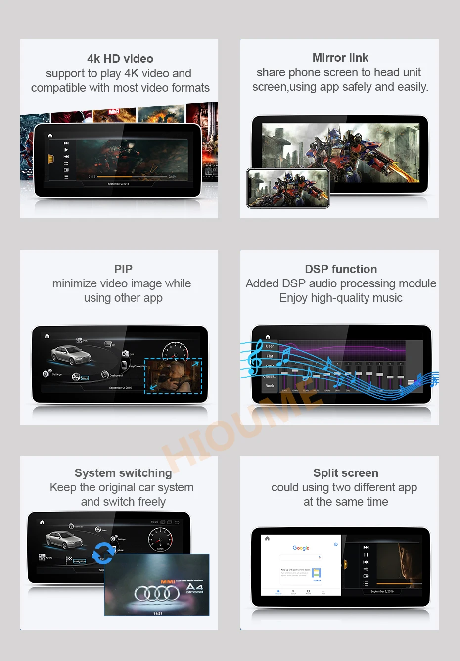 -Поддержка 4K HD видео, сплит-экран, Функция PIP