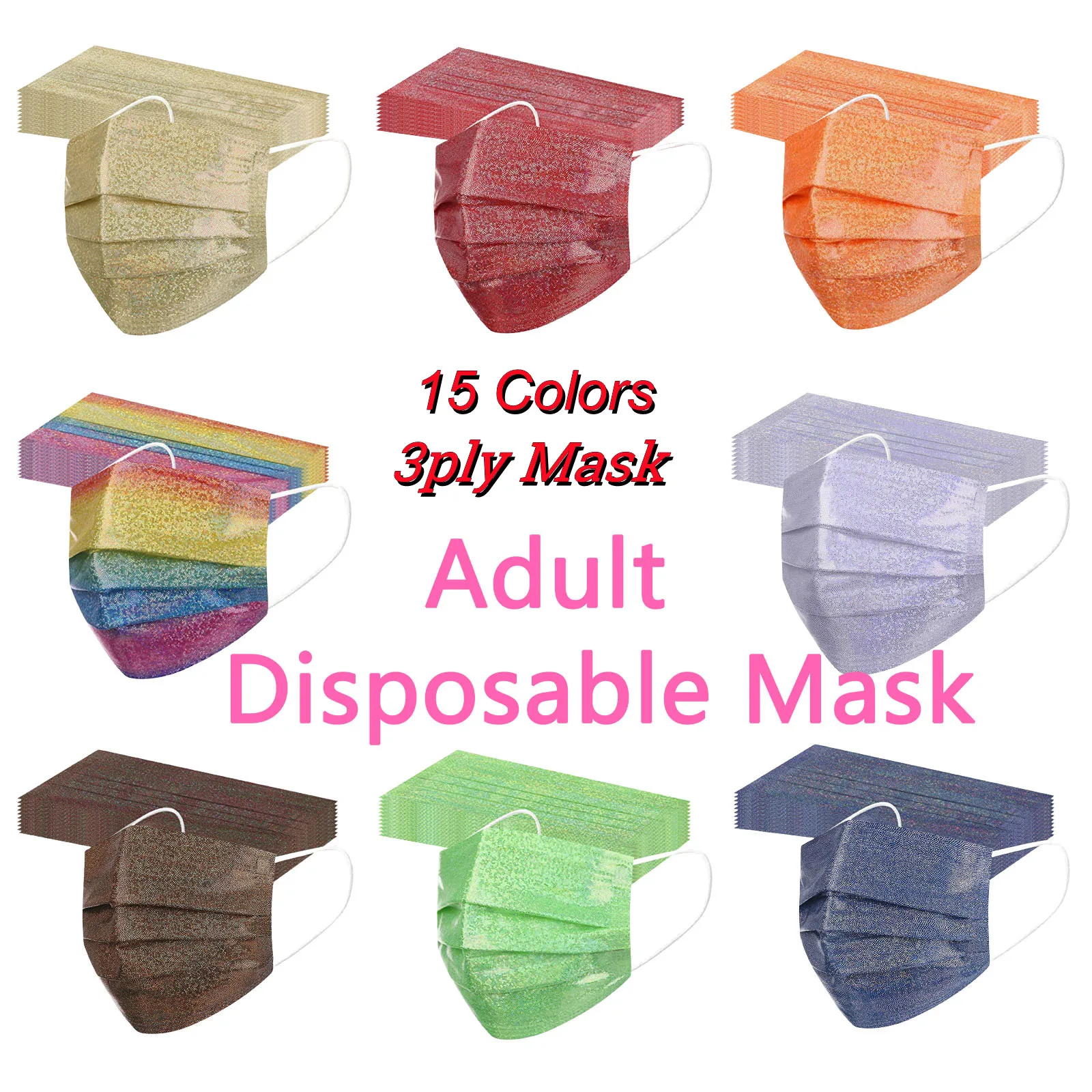 10 шт. разноцветная одноразовая маска с принтом для взрослых блестя...