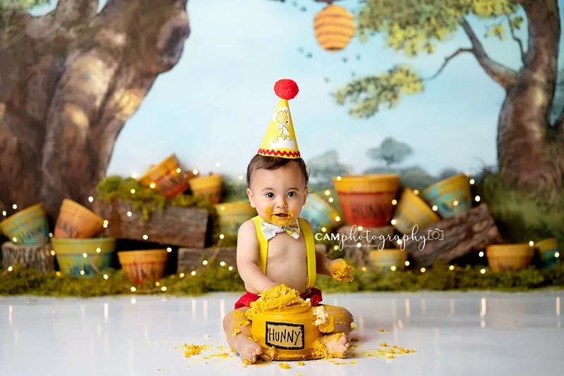 Hunny медведь милый медовый горшок Детская фотография фоны новорожд...