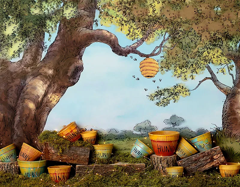 Винни Пух двор фон дерево дом хунни банка фон для новорожденных дет...