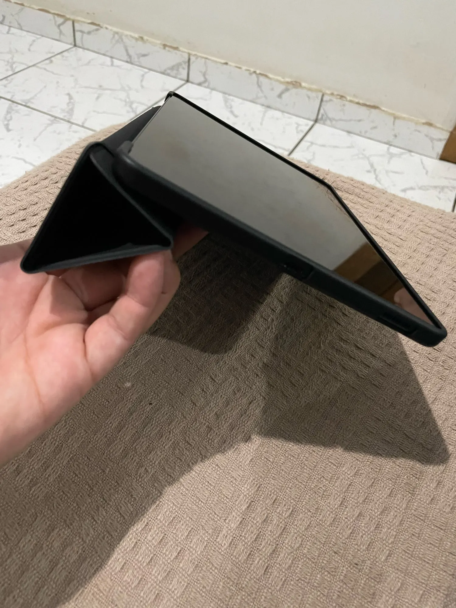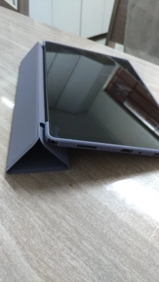 Отлично, цвет очень приятный и приятный на ощупь. Чехол хорошо удерживает планшет (как показано на рисунке).