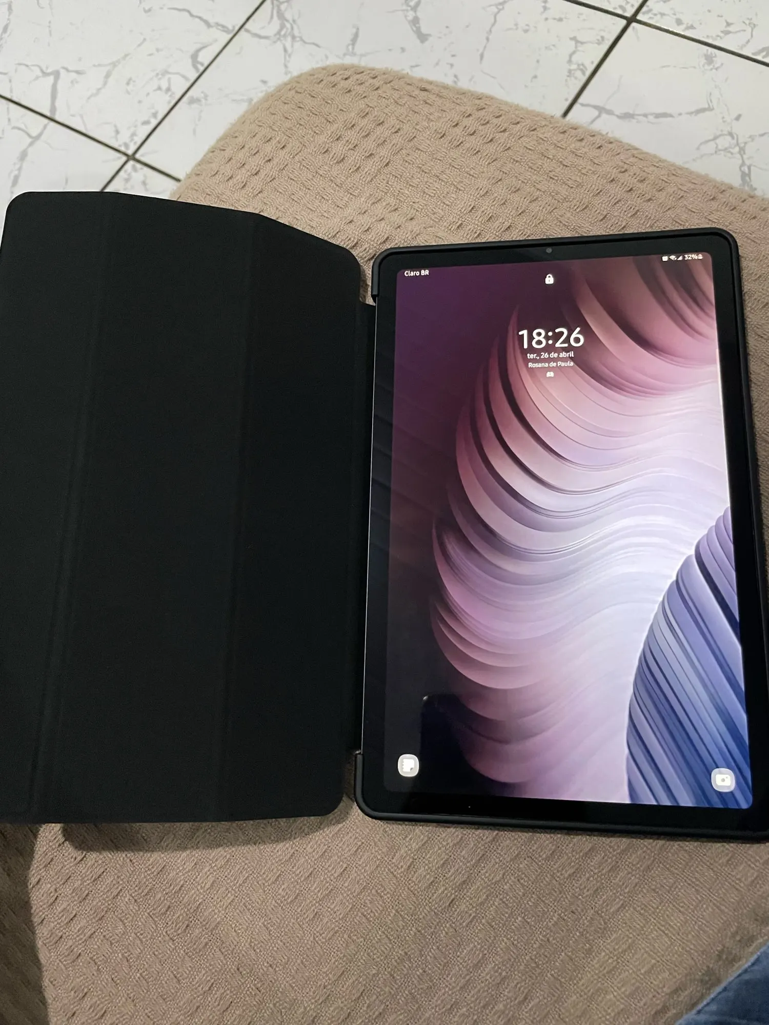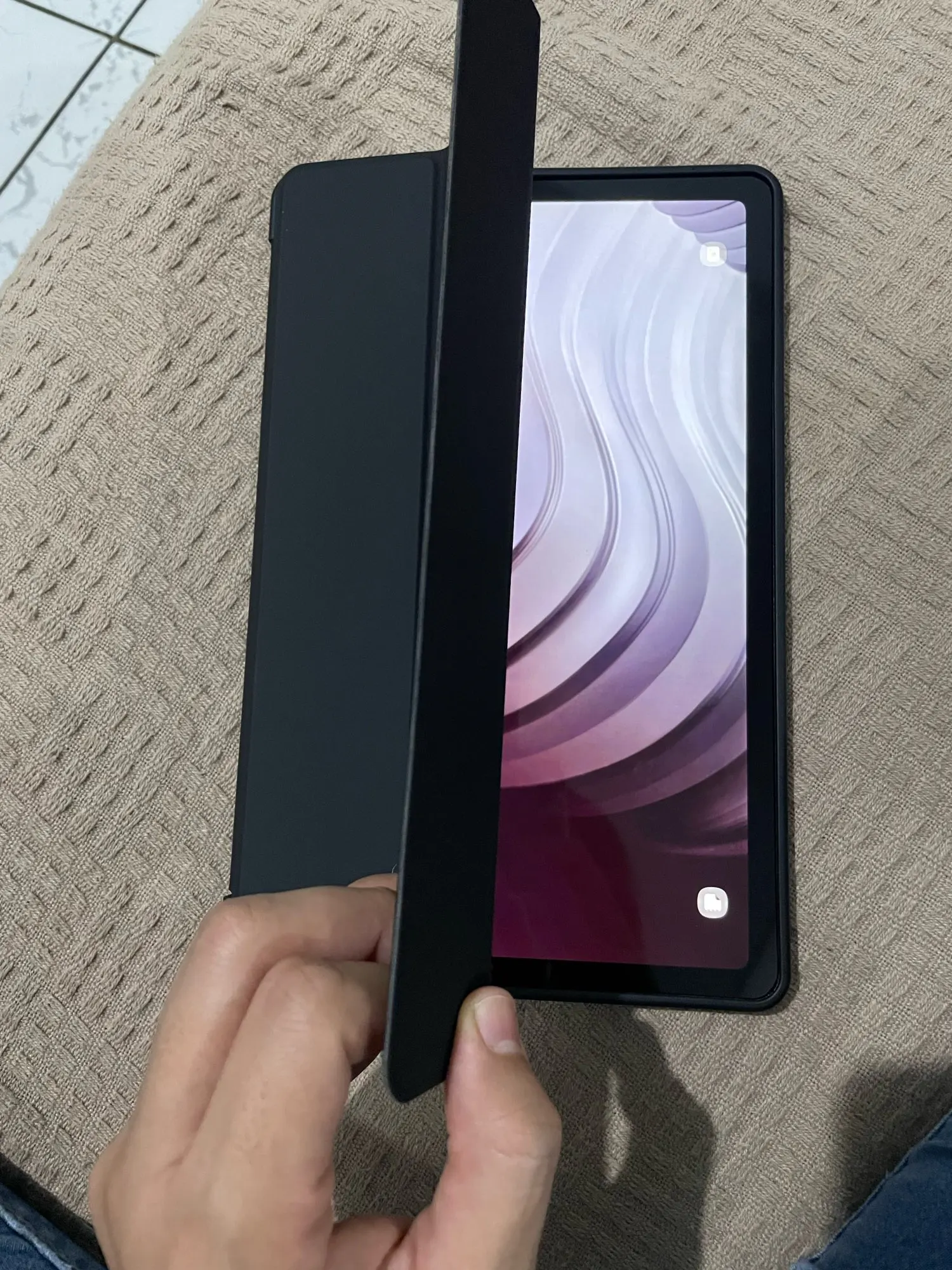Идеально. Чехол для повседневного использования! Мягкая на ощупь бархатистая ткань, хорошее качество, активный экран при открытии, защищает все края. Не только подходит к стилю... но в противном случае она идеальна!