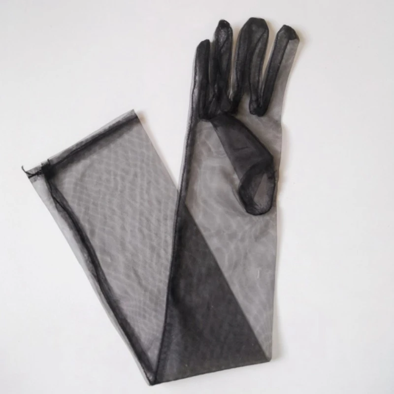 Женские перчатки для вождения 70 см ультратонкие модные сексуальные кружевные тюлевые Длинные свадебные платья для невесты рукавицы черные винтажные сетчатые перчатки