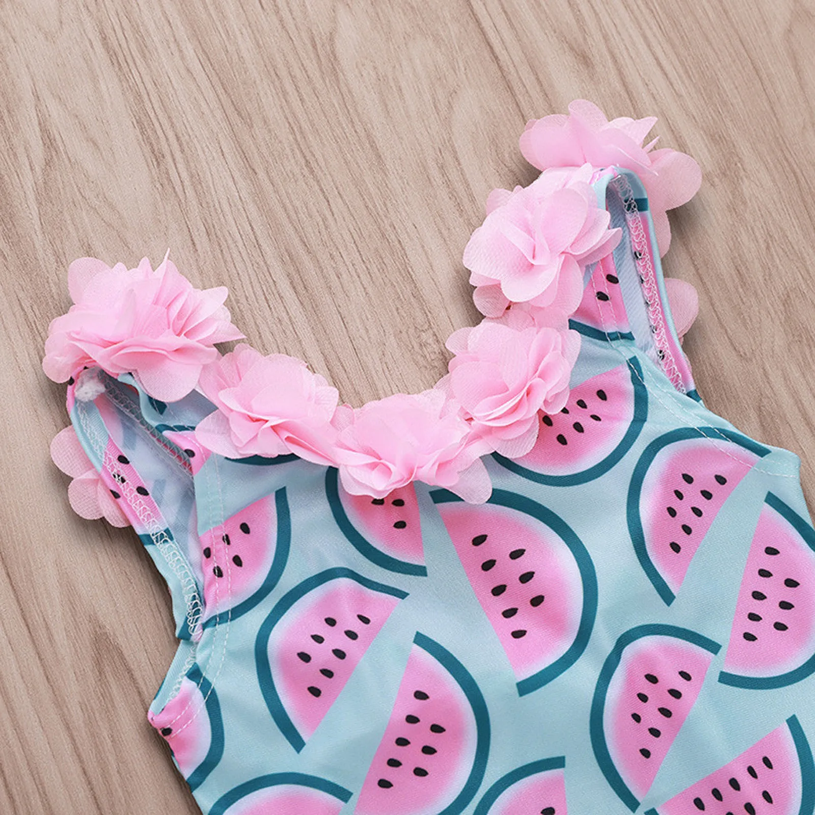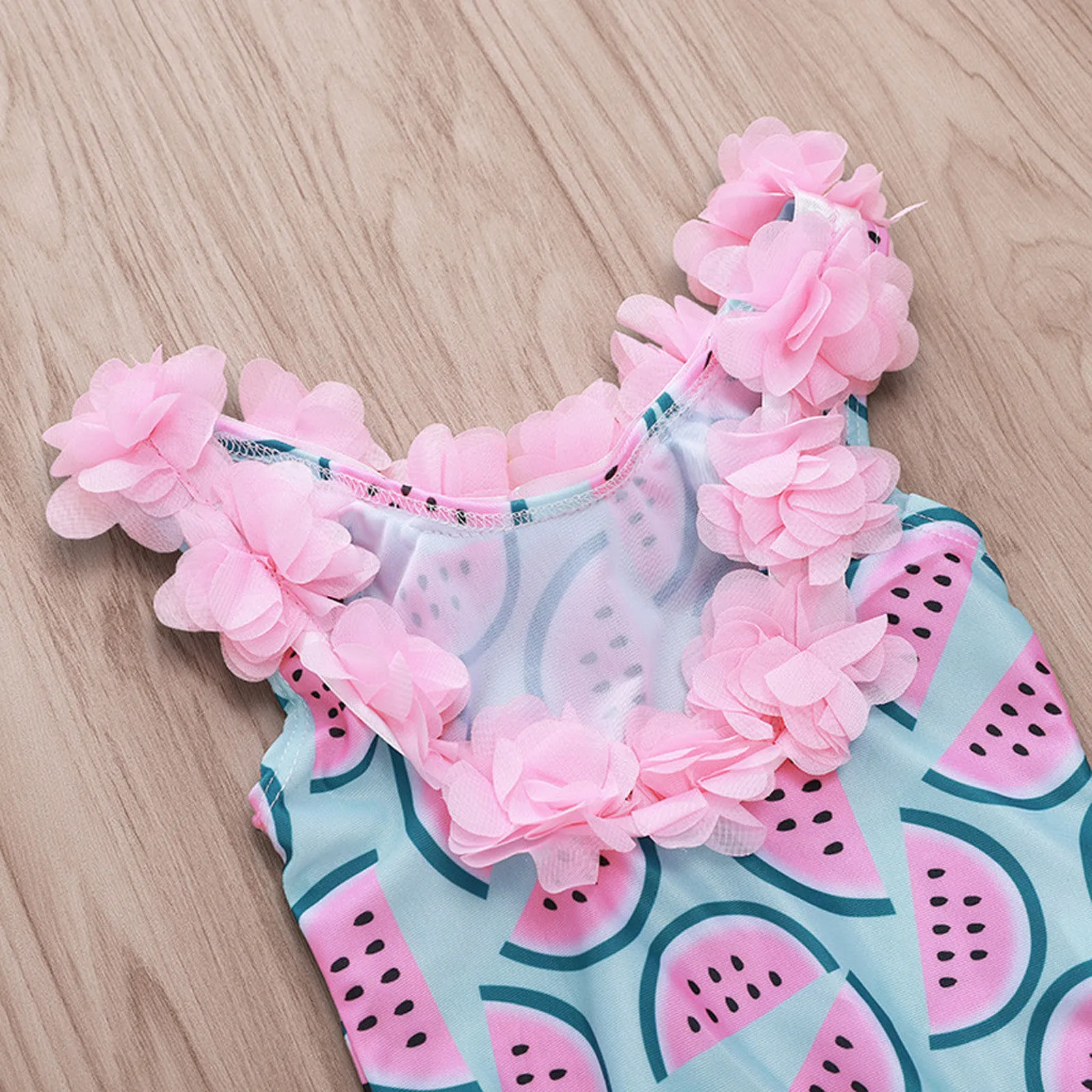 Цельнокроеный купальник для маленьких девочек, костюмы для купания малышей, принцесс, девочек, арбуз, 3D Цветочные Купальники, одежда для купания, детская Праздничная пляжная одежда