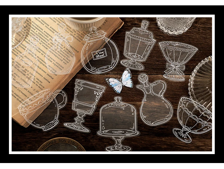 20 шт.упаковка, декоративные прозрачные наклейки в стеклянной бутылке