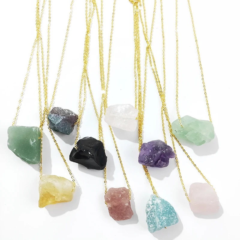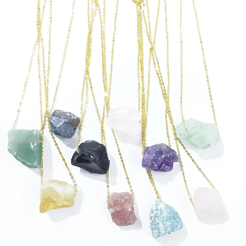 2022 новые золотые цепочки, Исцеляющие кристаллы, минеральные подвески, Натуральный Необработанный камень рейки, лабрадорит, аметист, кварцевое ожерелье, ювелирные изделия