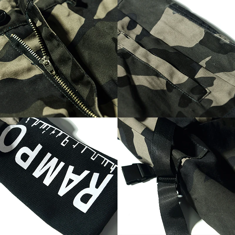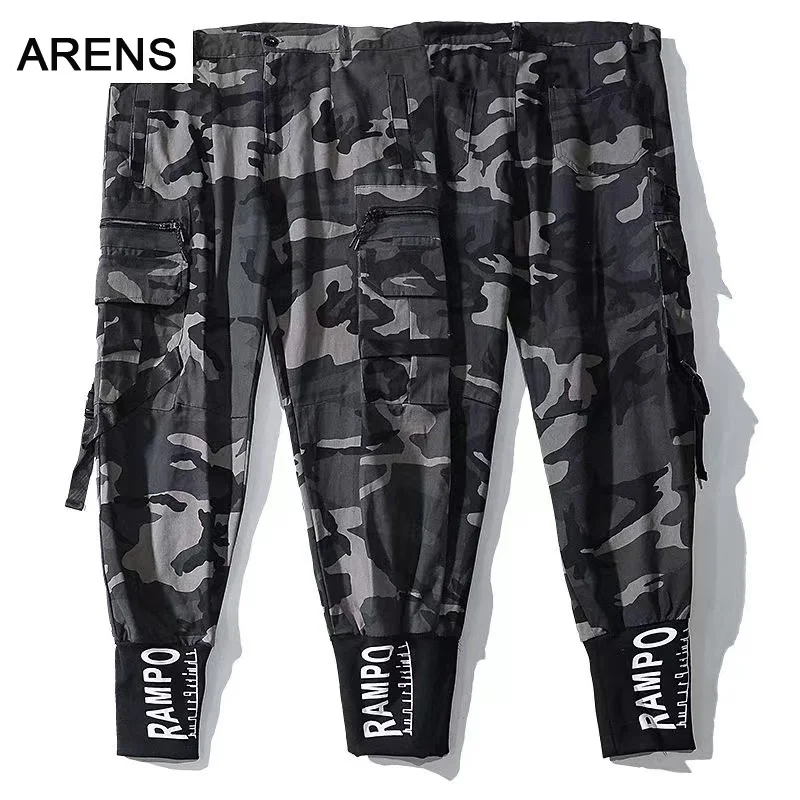 Брюки-карго мужские камуфляжные, спортивные джоггеры с лентами, много карманов, в стиле хип-хоп, тактические брюки в стиле милитари, A77