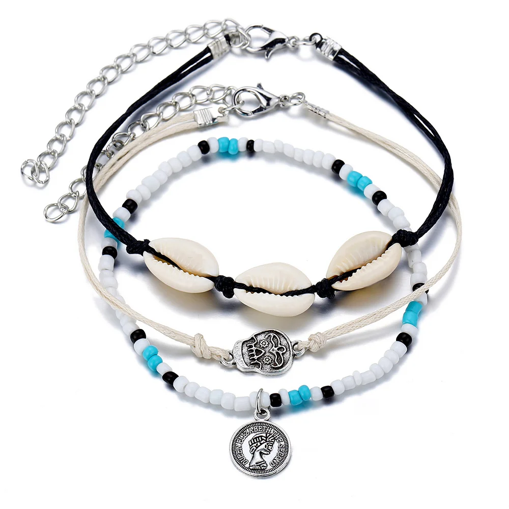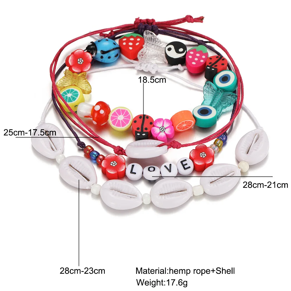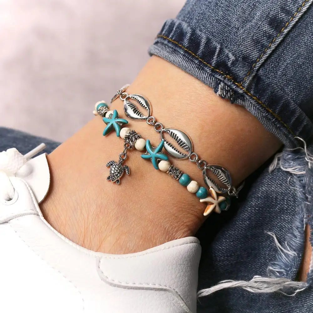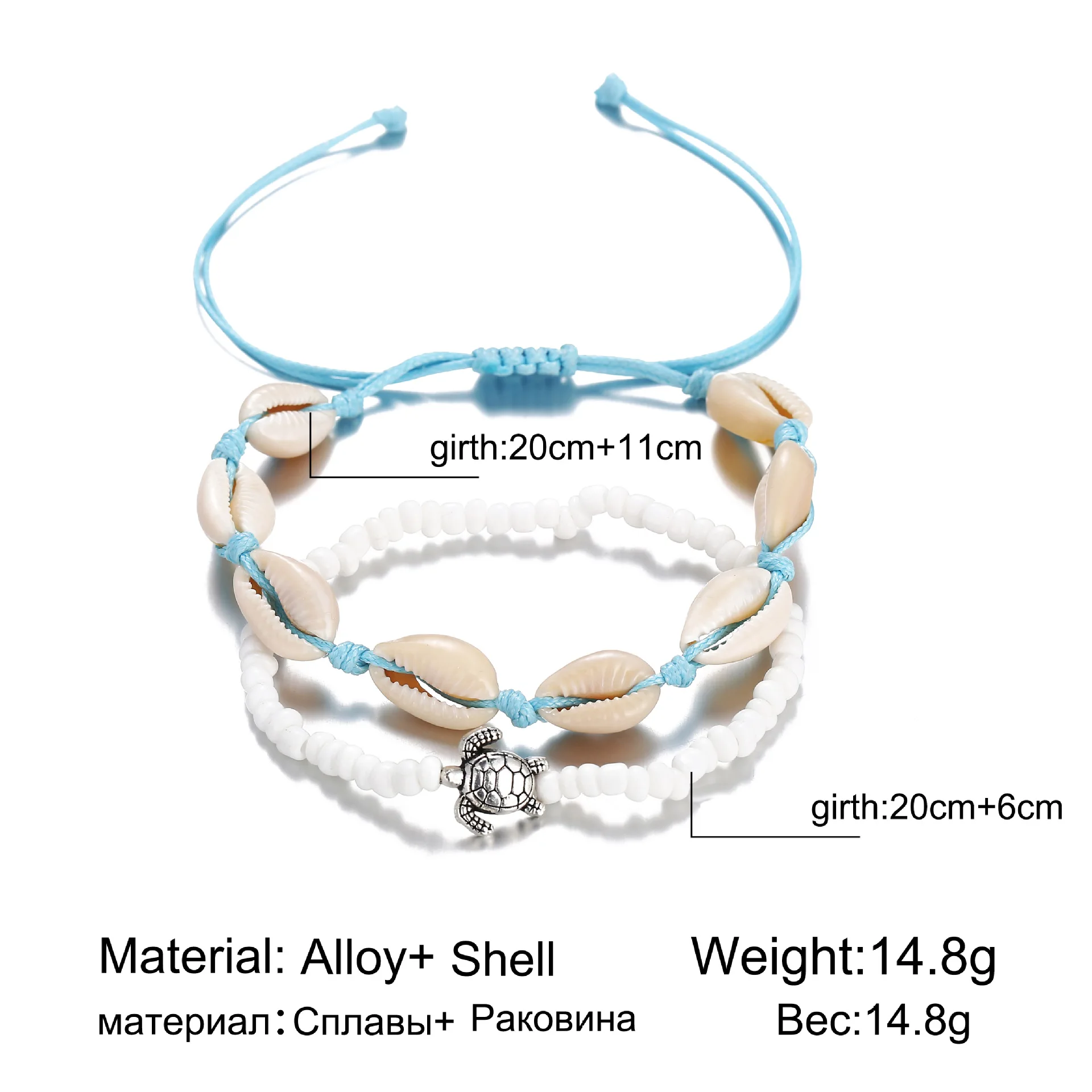 Набор ножных браслетов ZYZQ в богемном стиле Женский, 2 шт., креативный пляжный анклет с ракушками и черепашками, бижутерия в стиле ретро