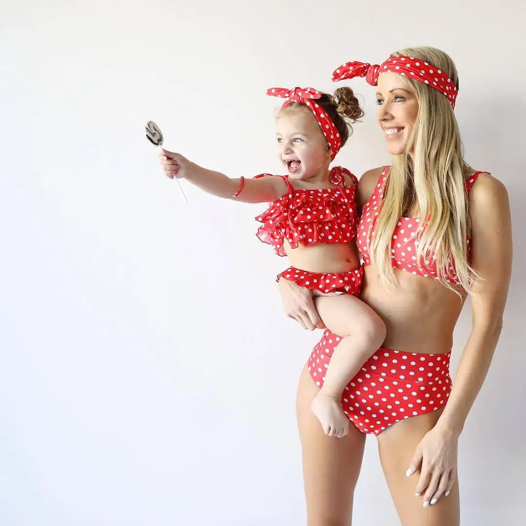 Купальник-бикини женский леопардовый в горошек, пикантный купальник с чашками пуш-ап для родителей и детей, Пляжное бикини