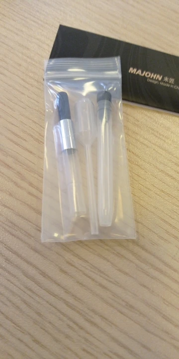 Получено быстро и хорошо упаковано. Опция с адаптерами явно бесполезна, потому что ее легко заполнить по умолчанию пипеткой или шприцем, потому что отверстие широкое. Ручка Тяжелая (она положительная) с металлическим корпусом и хорошо сбалансирована. Моя заметка 2 звезды приходит из-за того, что из упаковки ручка имеет большую царапину на протяжении ручки, которая приводит к появлению сырой металла. Это делает продукт менее красивым