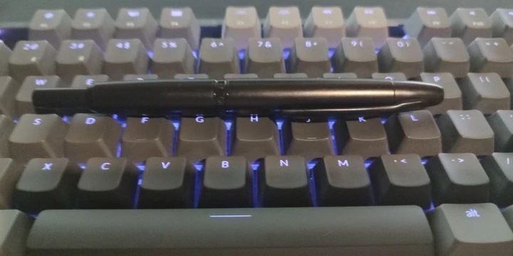 Цвет потрясающий. Хамелеон от серого к синему. Клип сначала мешал, потом привык. Перо сухое, скорее F. Нажим игнорирует, почерк немного меняет. Написанное похоже на шариковую ручку. Проблема со скатывающейся ручкой решена.
